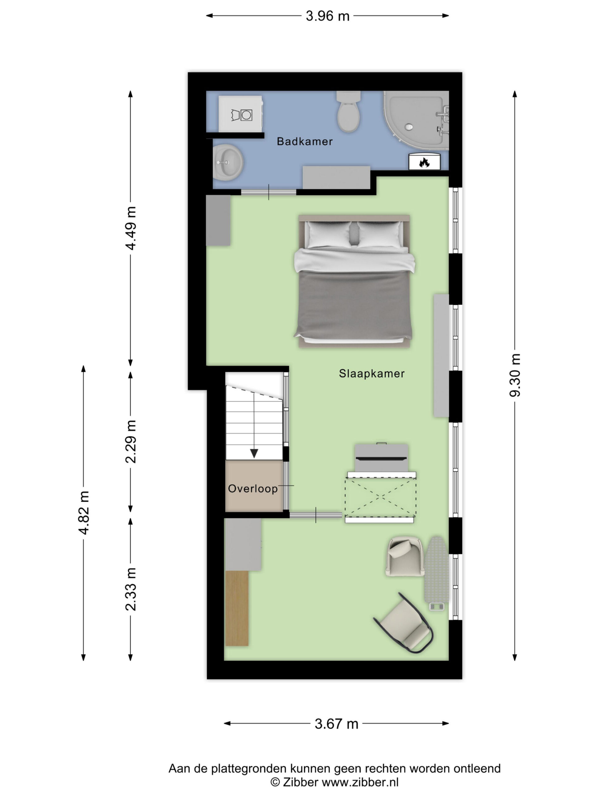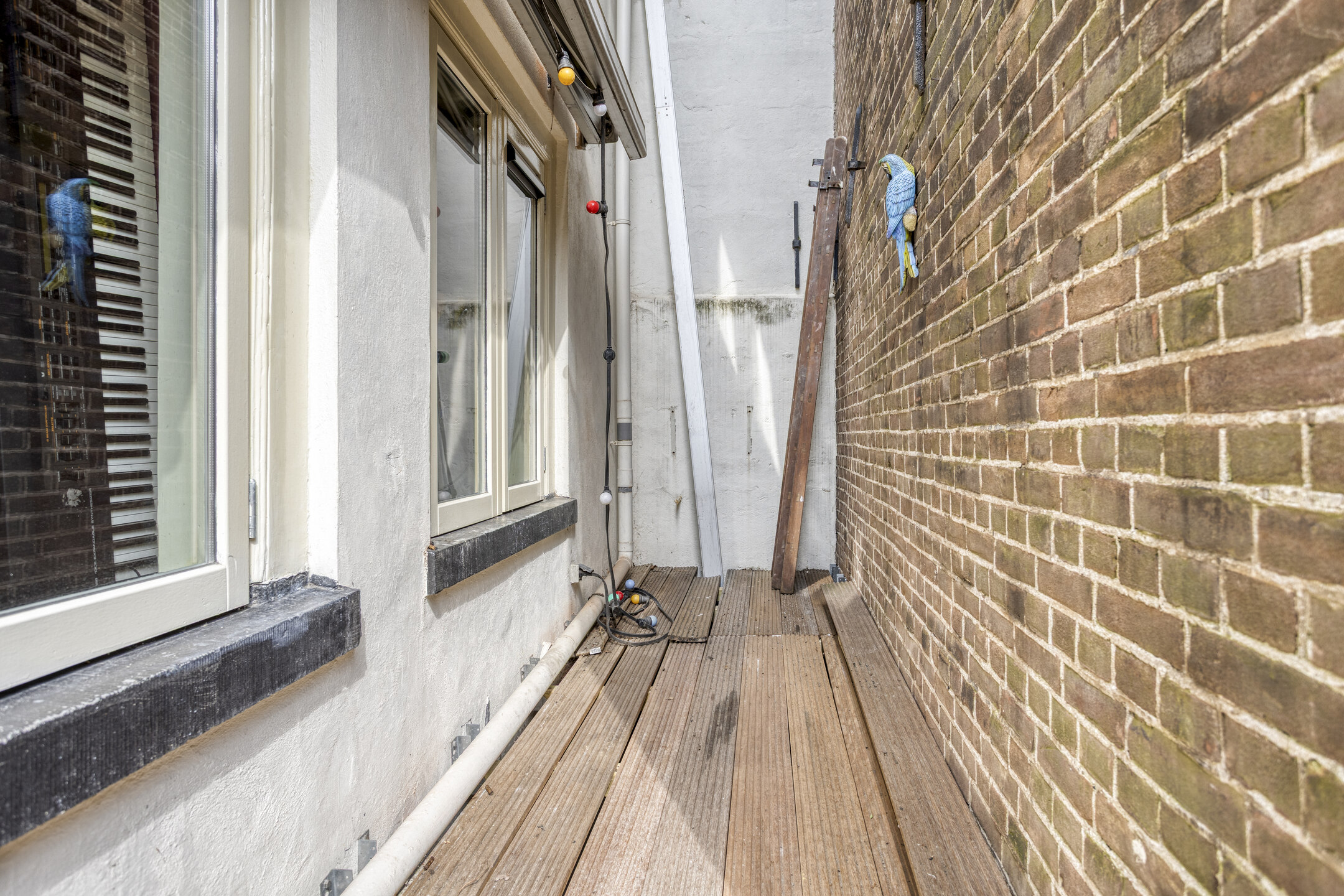 Tweede verdieping: De trap in de woonkamer leidt naar de lichte slaapkamer op de tweede verdieping, eveneens voorzien van een eikenhouten vloer. De badkamer op deze verdieping beschikt over een douche, toilet en een aansluiting voor de wasmachine.