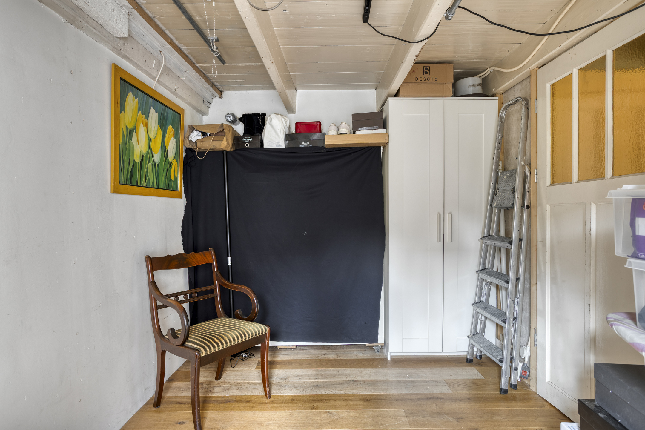 Bergzolder: De bergzolder is toegankelijk via een vaste houten trap in de slaapkamer en een vlizotrap in de badkamer. Deze volledig bevloerde ruimte is voorzien van een dakraam en biedt extra opbergmogelijkheden.