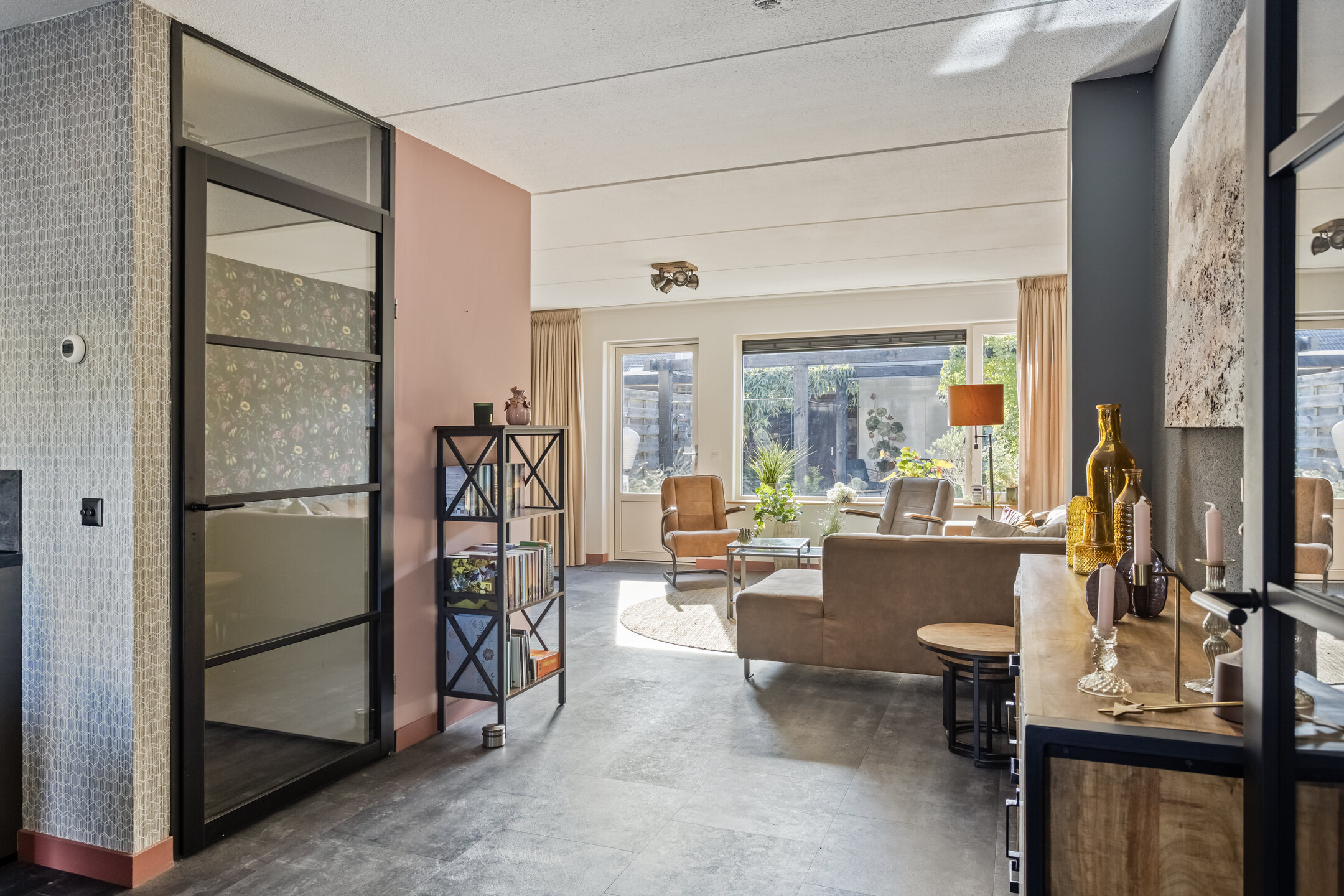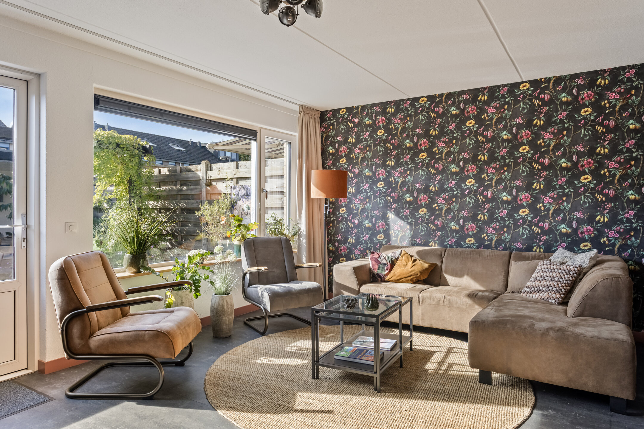 Entree via de hal met meterkast, garderobe en toegang tot de woonkamer. De ruime, lichte woonkamer is tuingericht en biedt een prettig uitzicht op de gezellige achtertuin. Aan de voorzijde van de woning bevindt zich de open keuken, die in 2022 is vernieuwd.