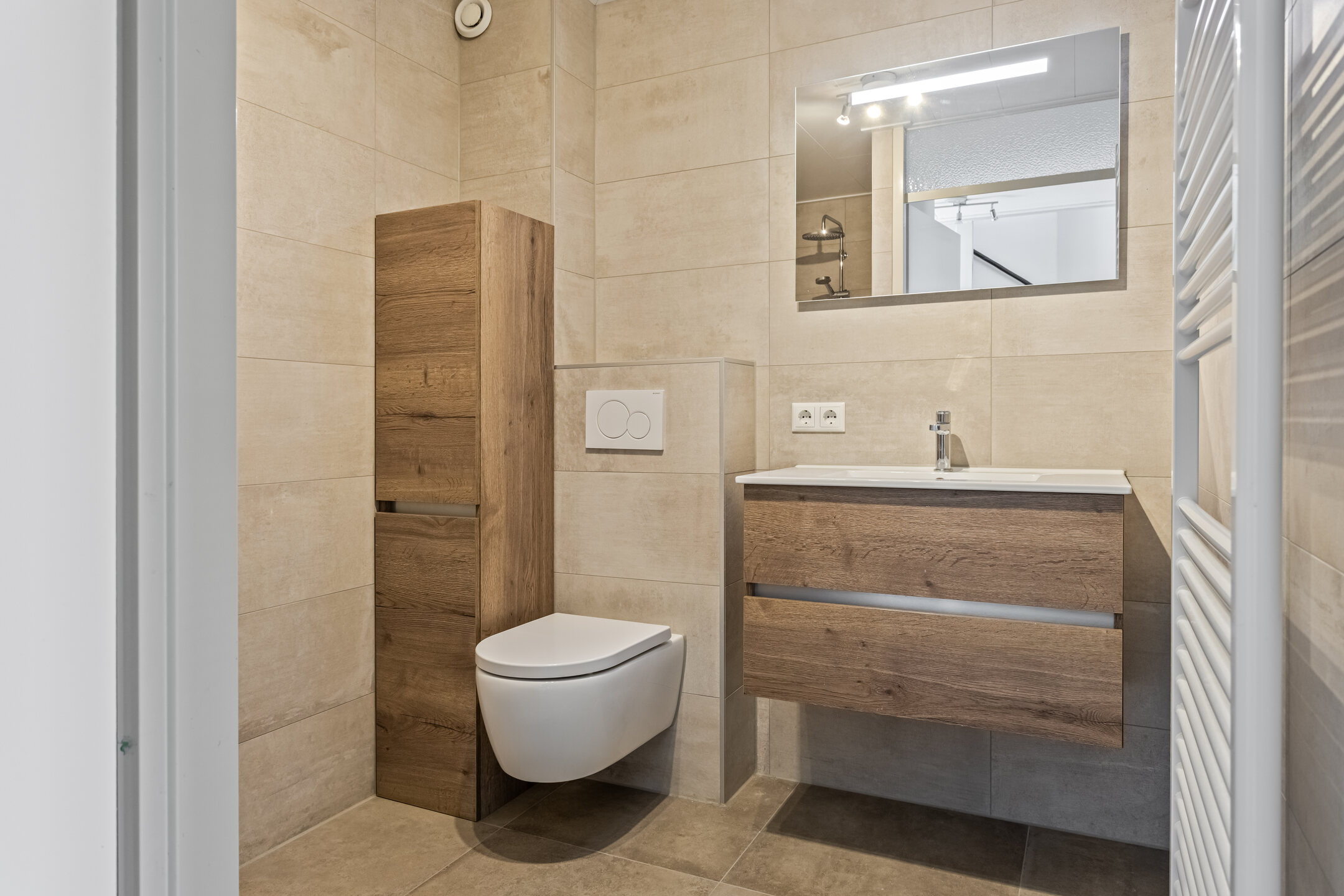 Overloop, deze biedt toegang tot drie slaapkamers. Keurige slaapkamers, waarbij de slaapkamer aan de achterzijde is voorzien van een airco. De recent vernieuwde badkamer is modern en beschikt over een inloopdouche, toilet, wastafelmeubel, designradiator en vloerverwarming.