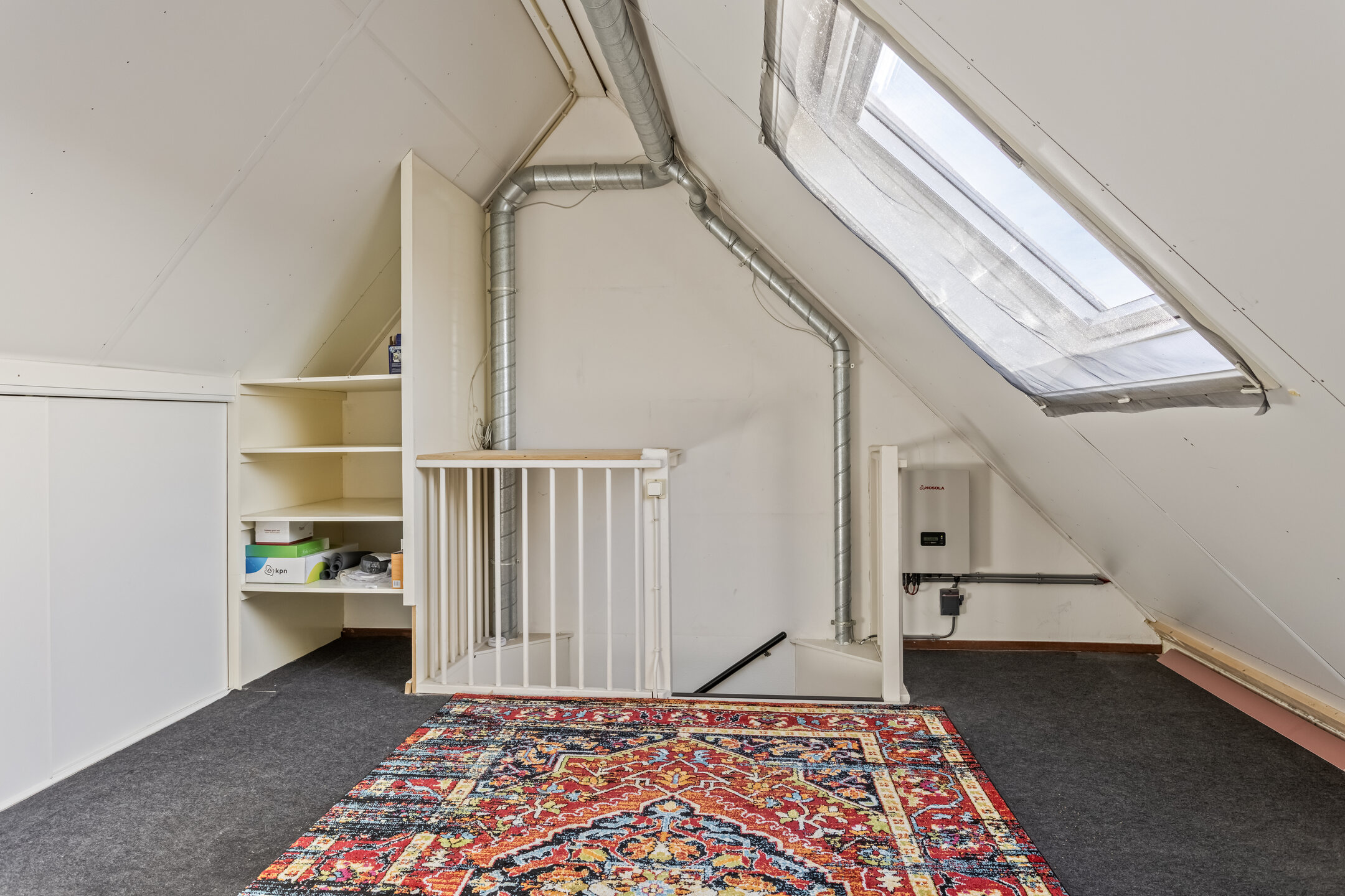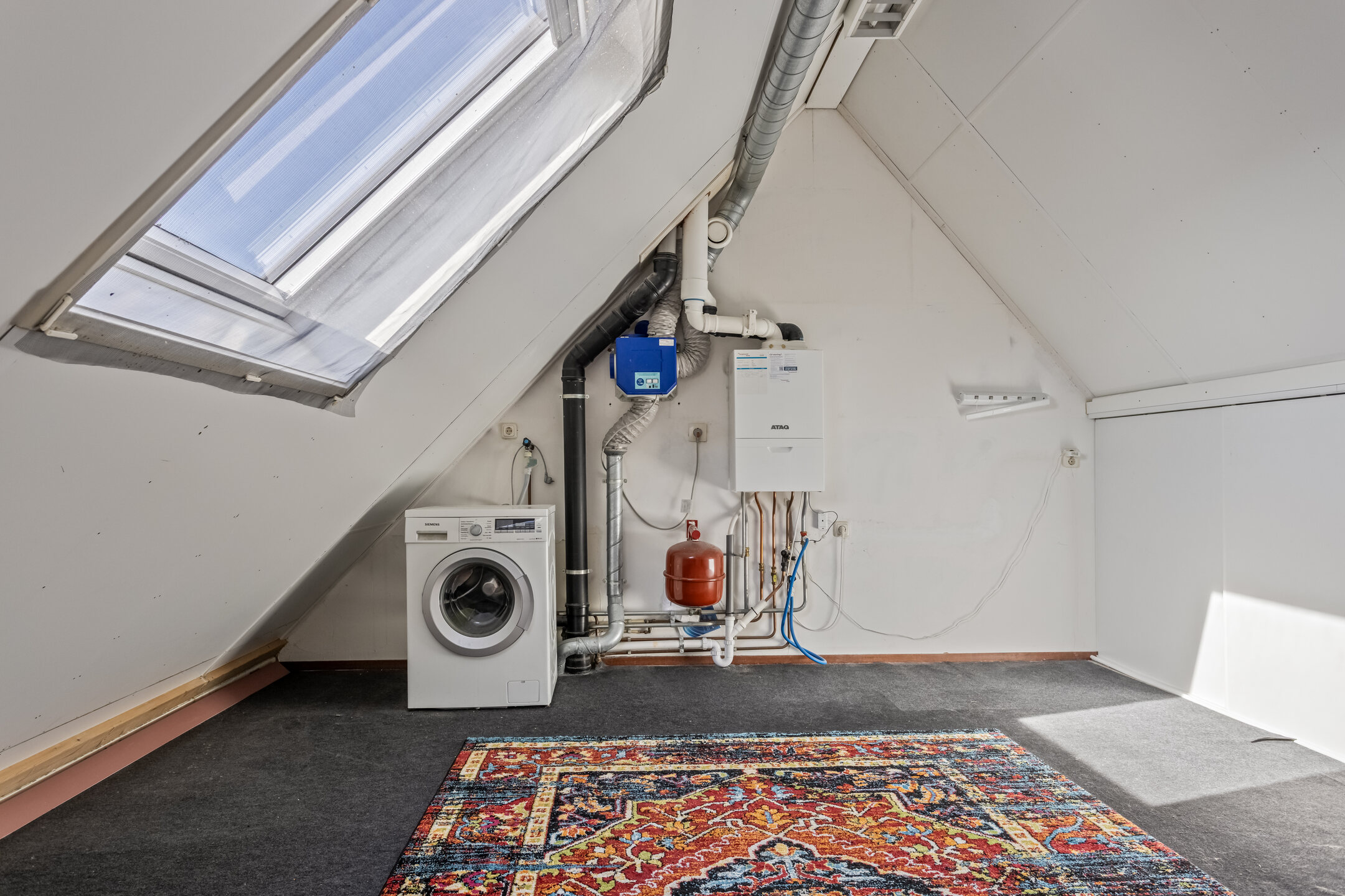 Middels vaste trap te bereiken. Ruime, open zolder, die tal van mogelijkheden biedt. Hier bevindt zich tevens de wasmachineaansluiting en de C.V-Ketel.