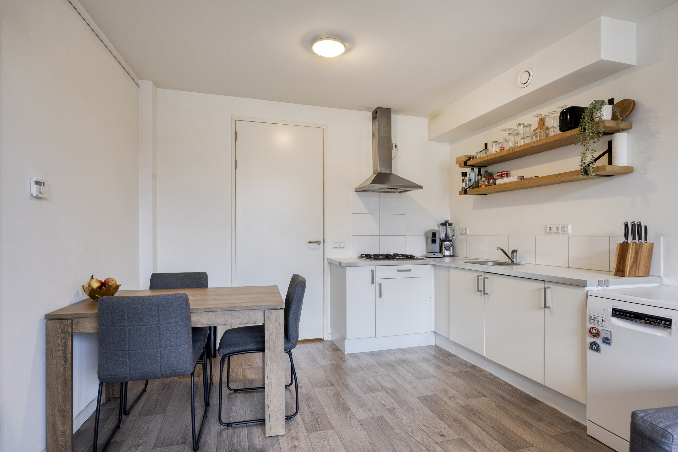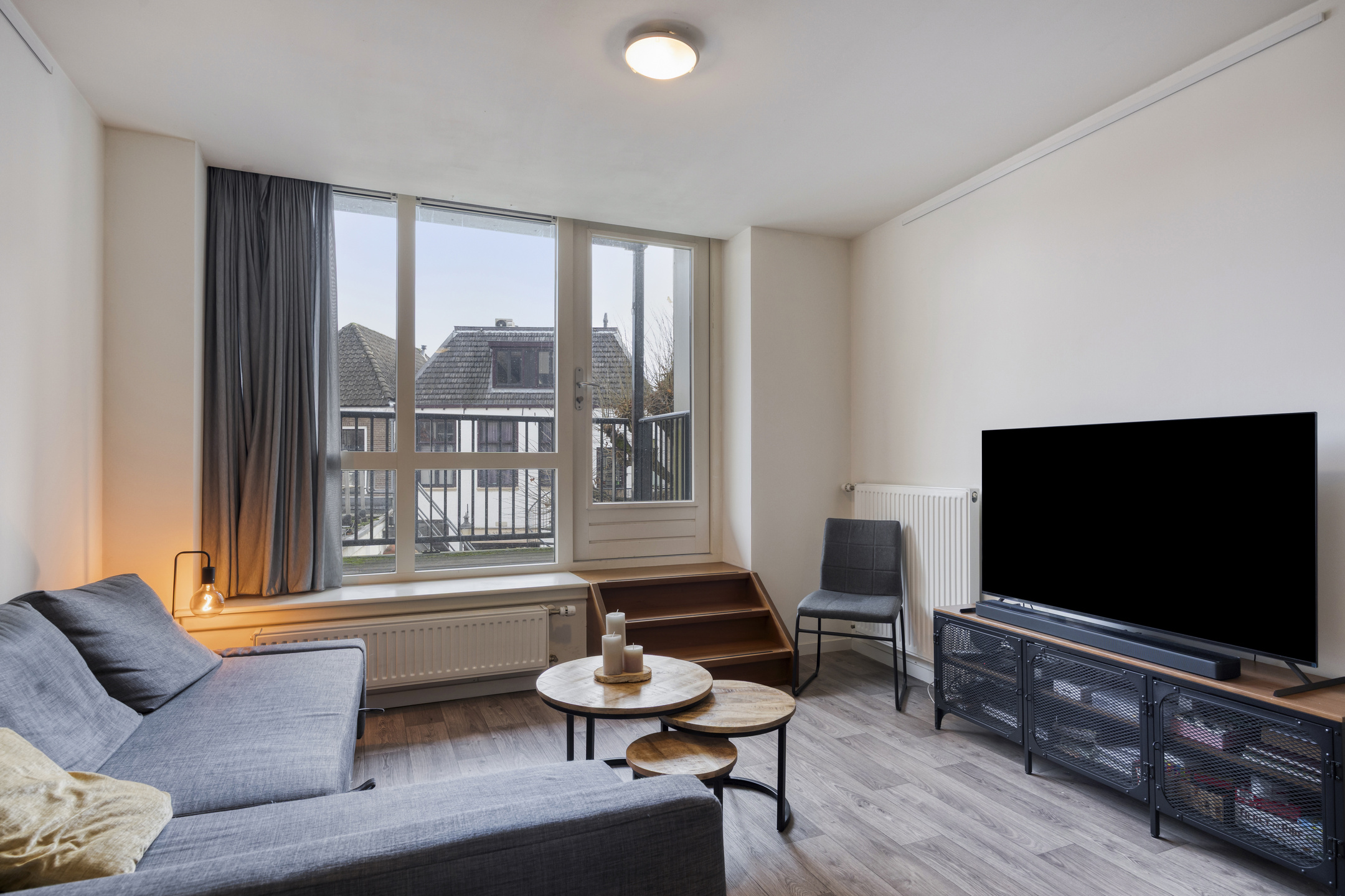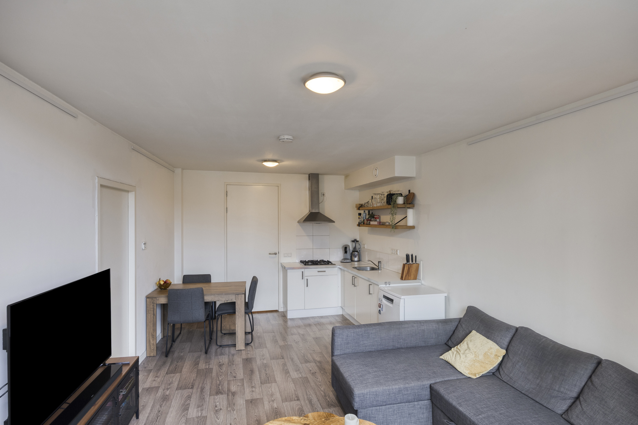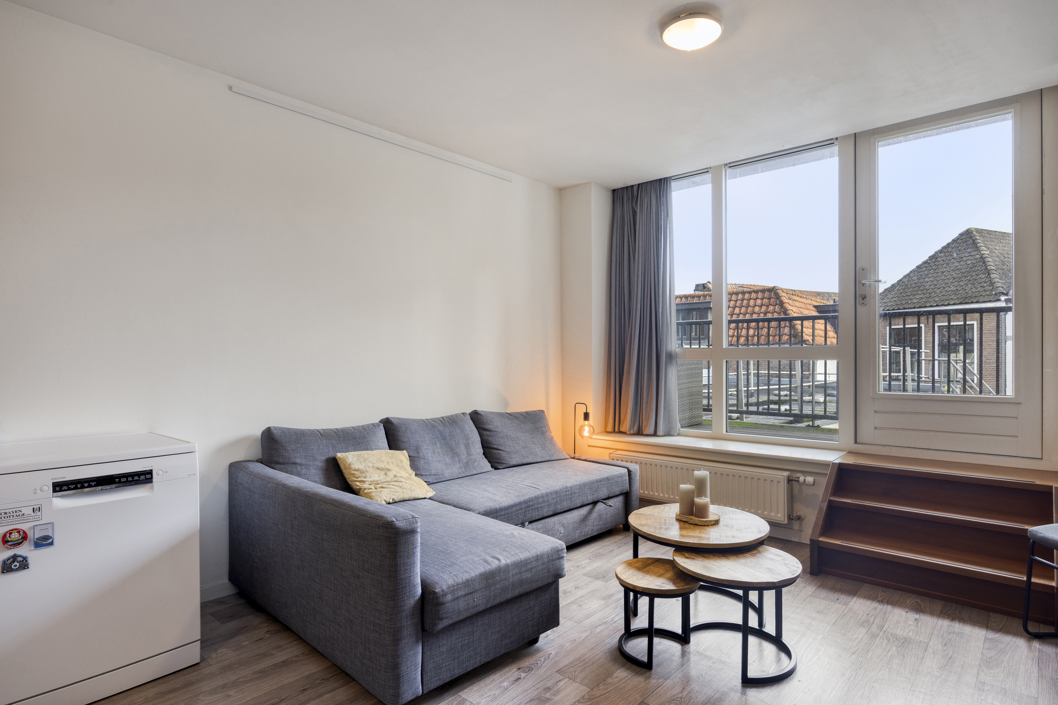Vanuit de hal betreedt u de lichte en ruime woonkamer met open keuken. De leefruimte biedt voldoende plaats voor een comfortabele zithoek en een eethoek. De grote glazen pui zorgt voor veel daglicht en geeft toegang tot het balkon van circa 5 m², gelegen op het oosten. Vanaf hier heeft u een fraai uitzicht op de monumentale bebouwing aan de achterzijde.