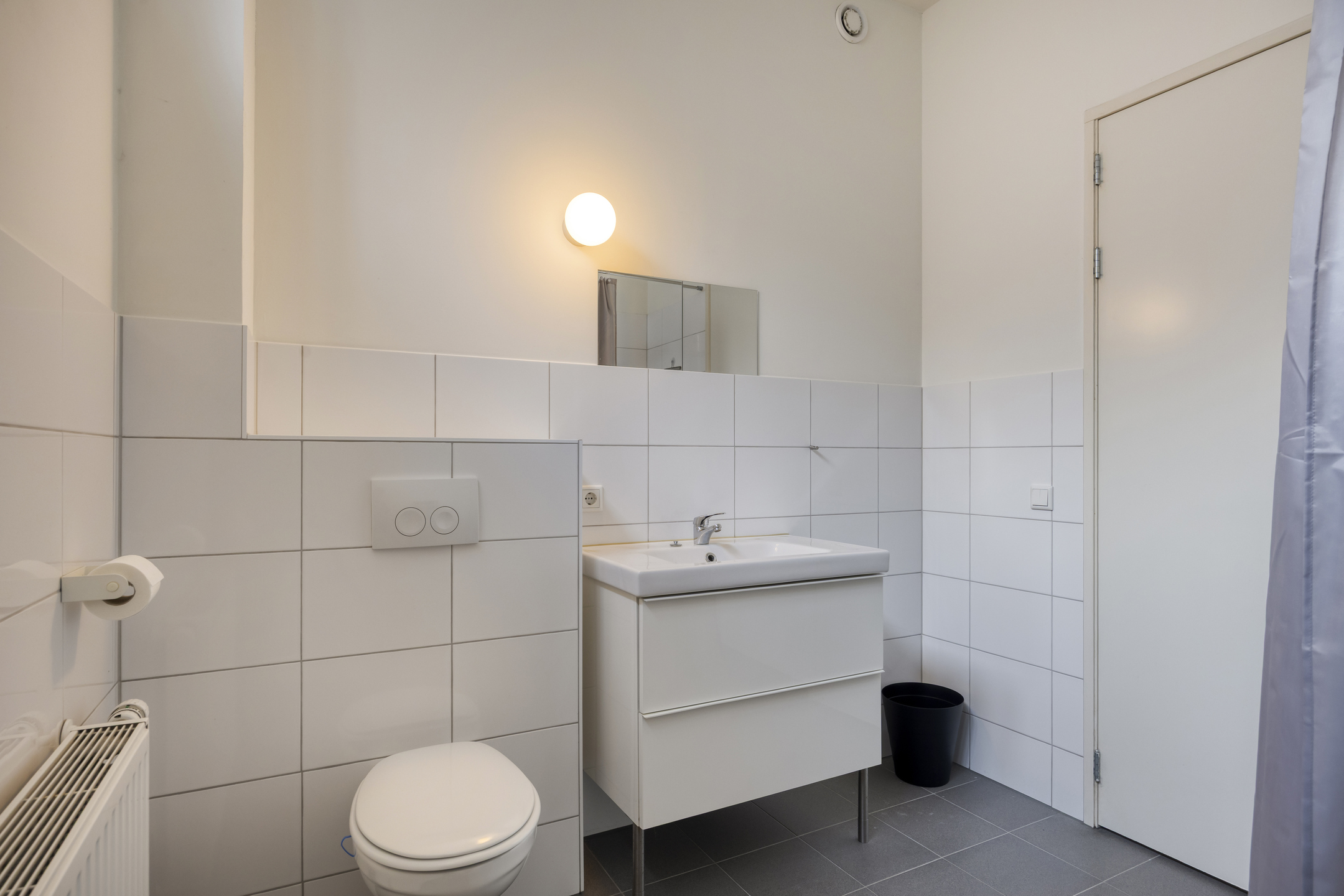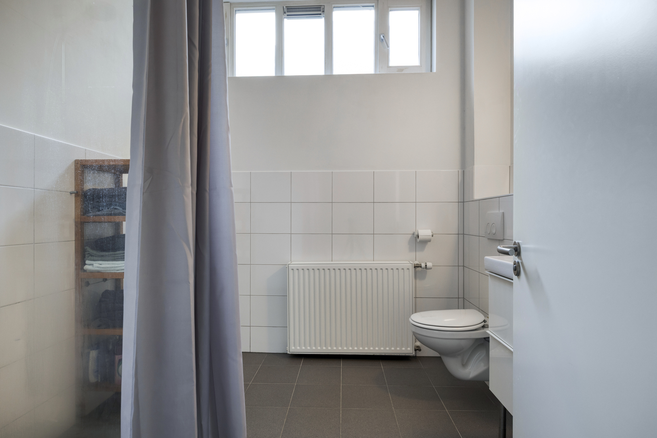 Via een tussenhal zijn de slaapkamer en de badkamer bereikbaar. De badkamer is netjes uitgevoerd en voorzien van een douche, tweede toilet en wastafel.