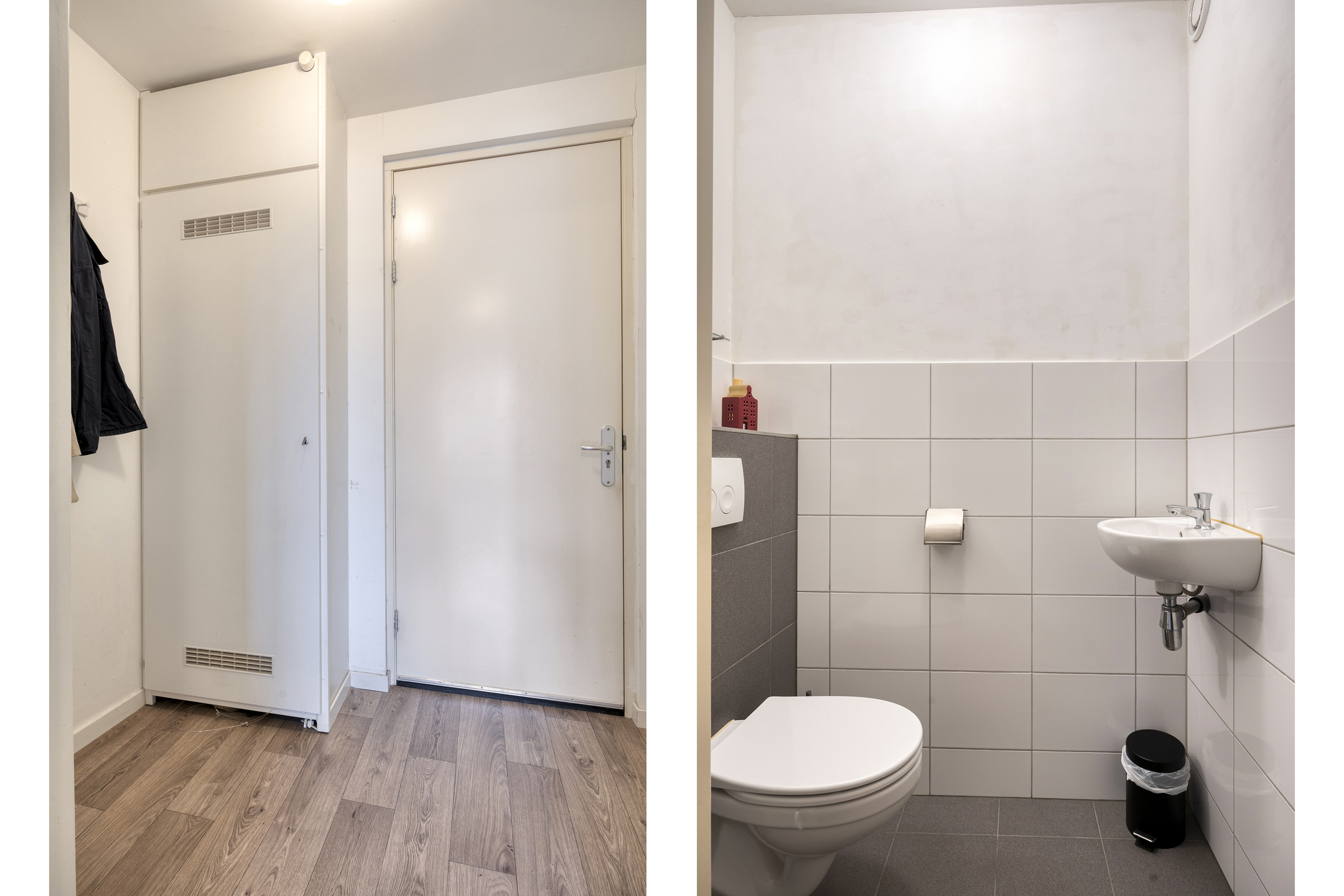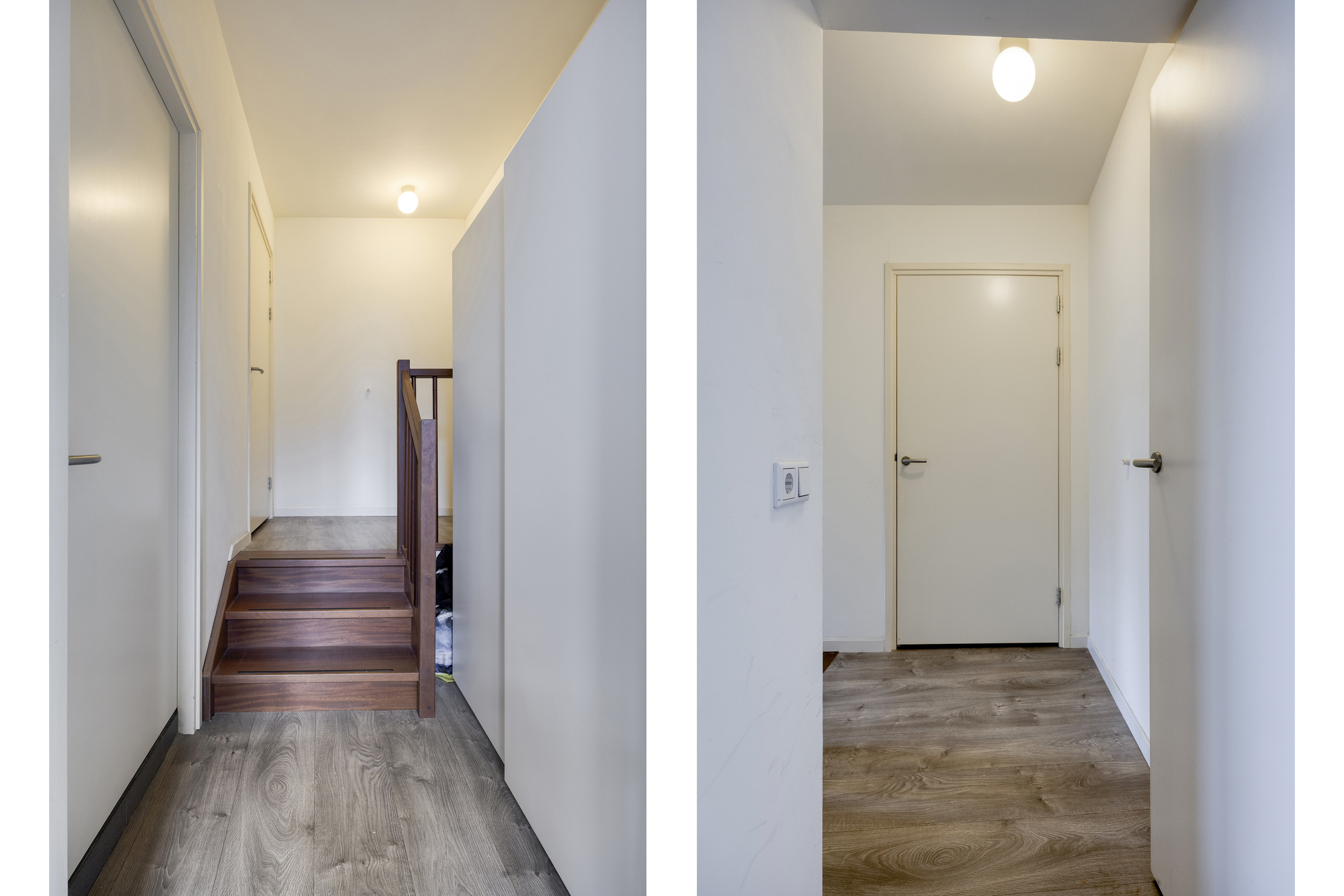 De entree geeft toegang tot een ruime hal met garderobe, meterkast en een toiletruimte met zwevend toilet en fonteintje. De woning is voorzien van glasvezel en wordt verwarmd middels een eigen cv-installatie.