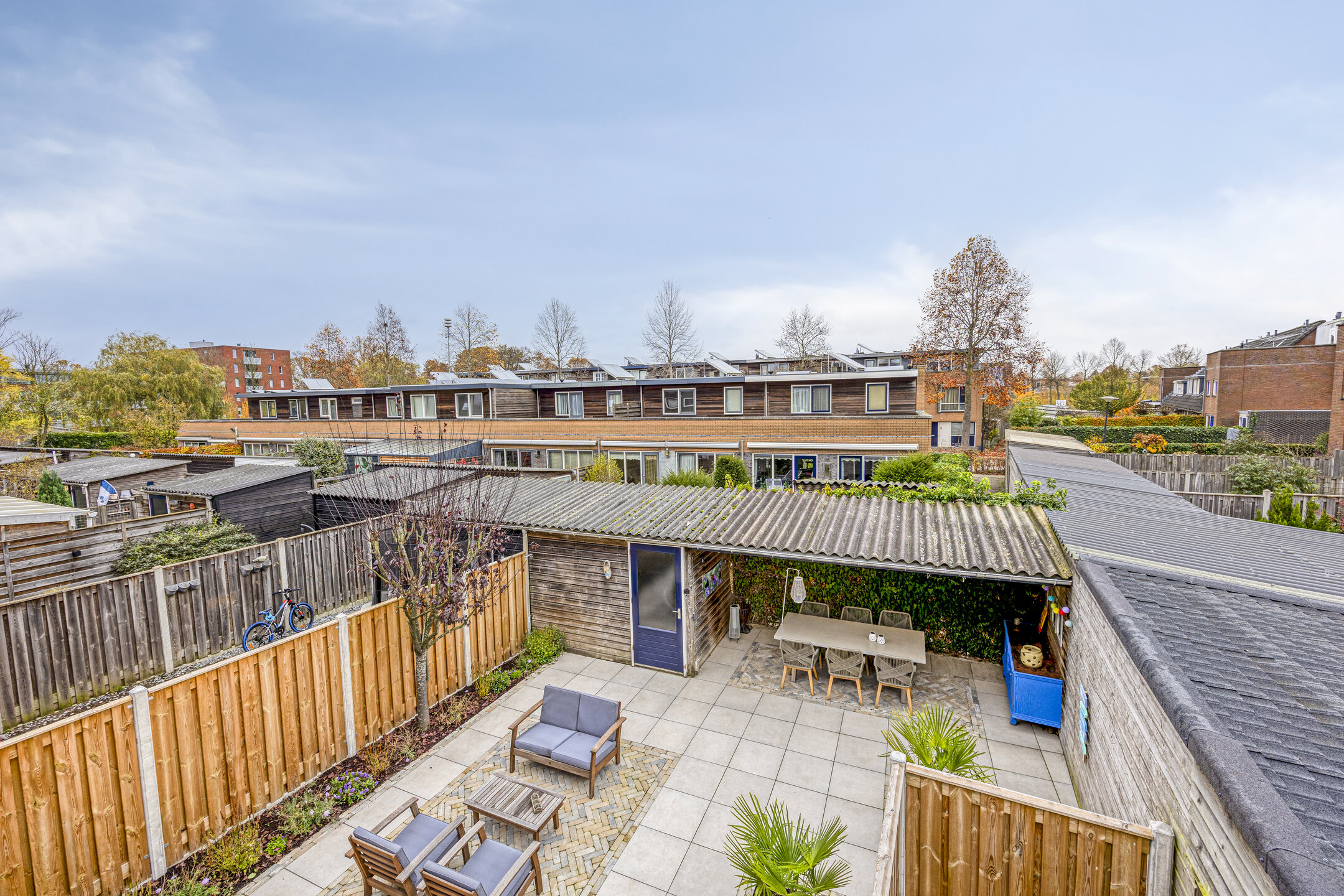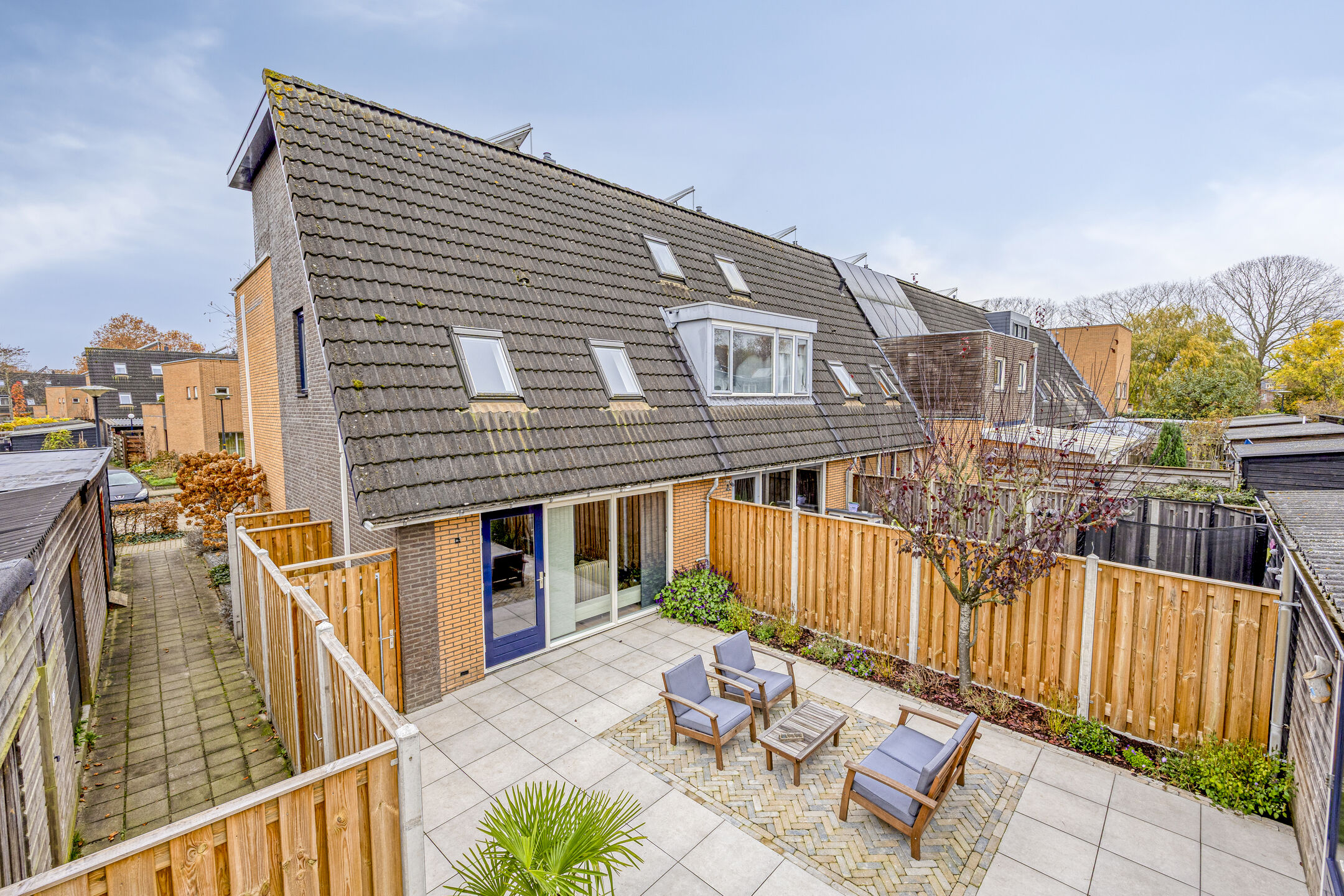 De achtertuin is fraai, onderhoudsvrij aangelegd en heeft een oppervlakte van plm. 70 m². De tuin is naar het noordoosten gericht . Er is een overdekte zithoek en een mooie, houten schuur voor extra opbergruimte. Er is ook een handige goed afsluitbare achterom. Voor autoliefhebbers is er voldoende parkeergelegenheid in de straat.