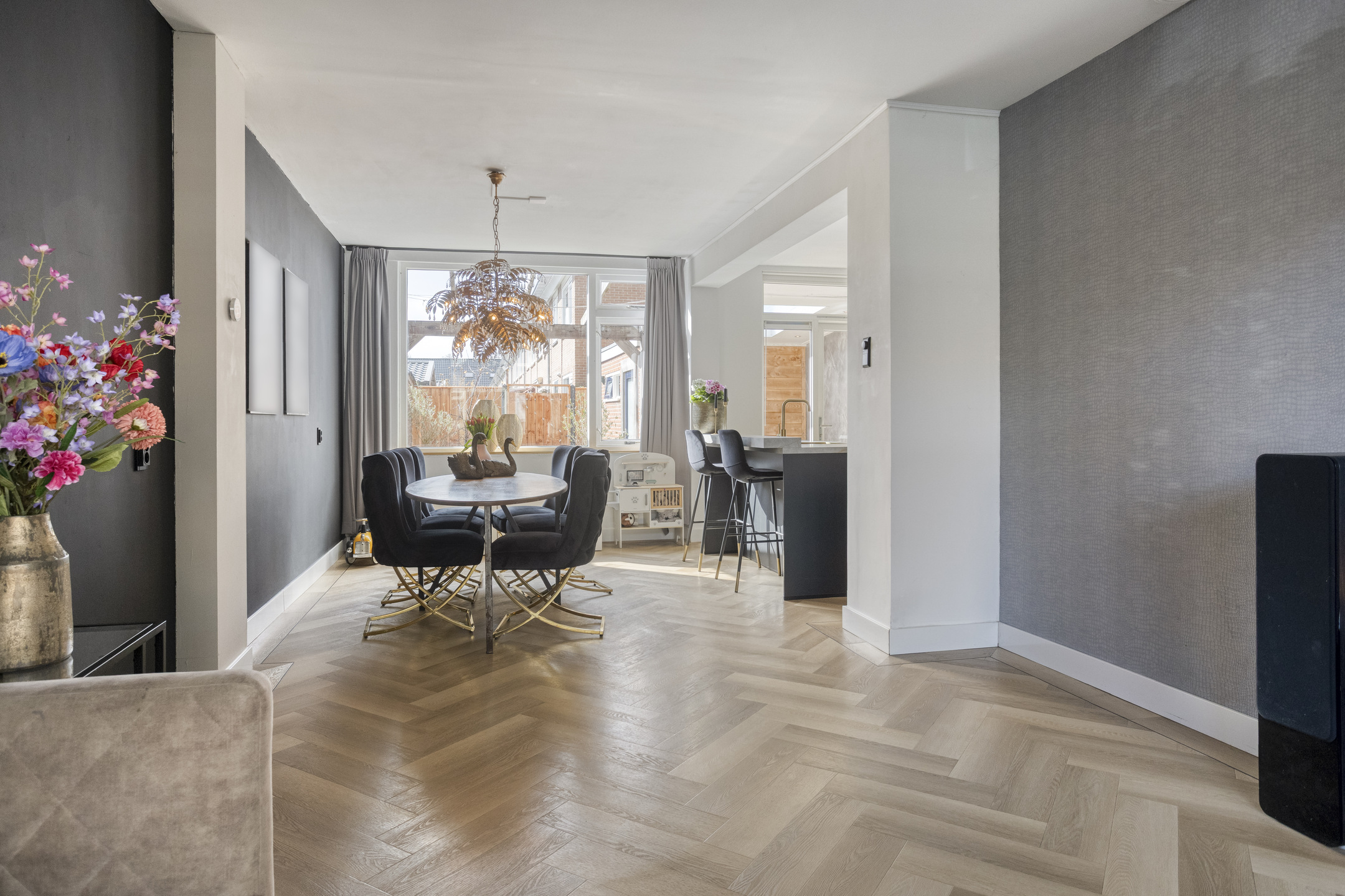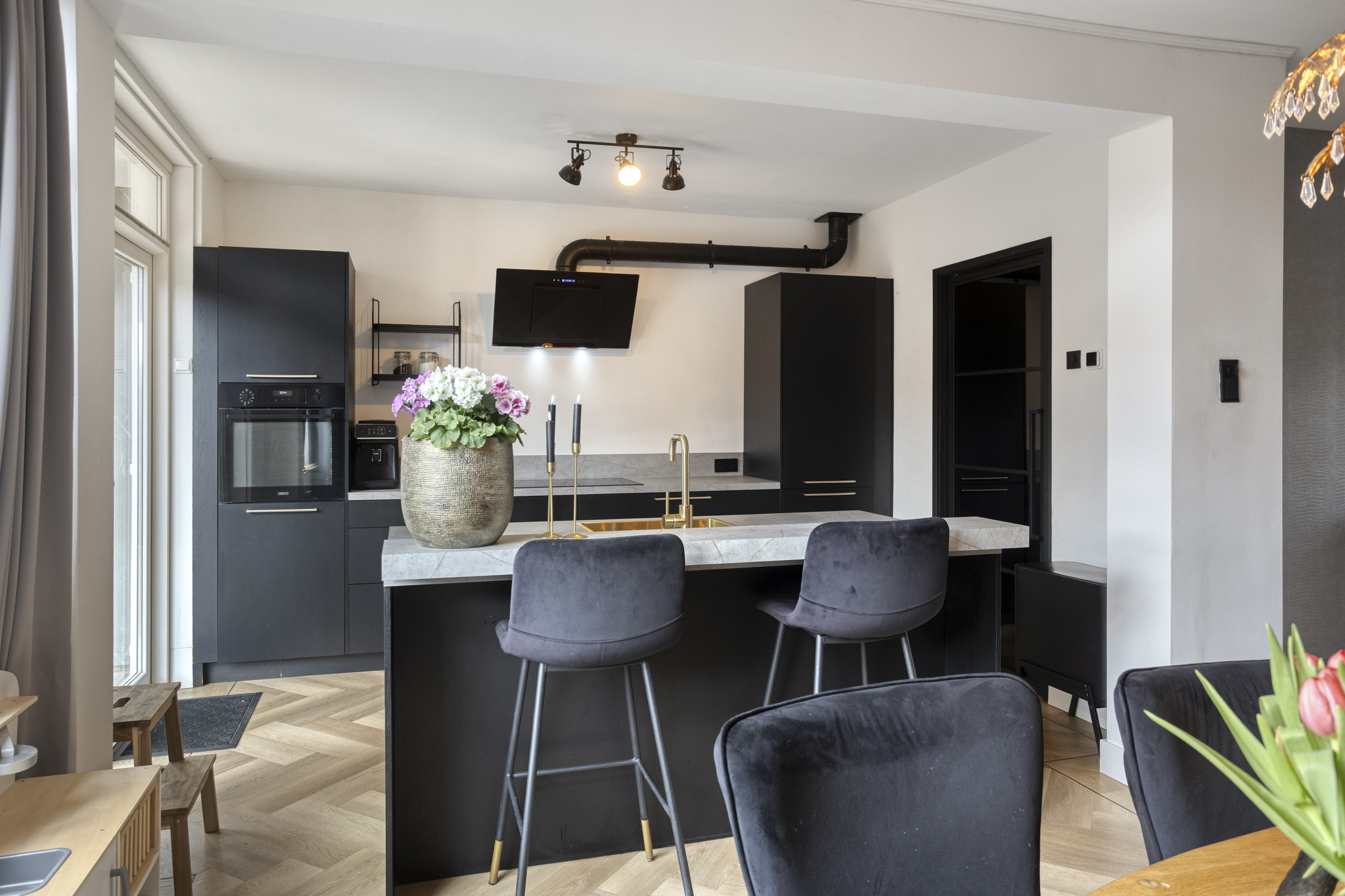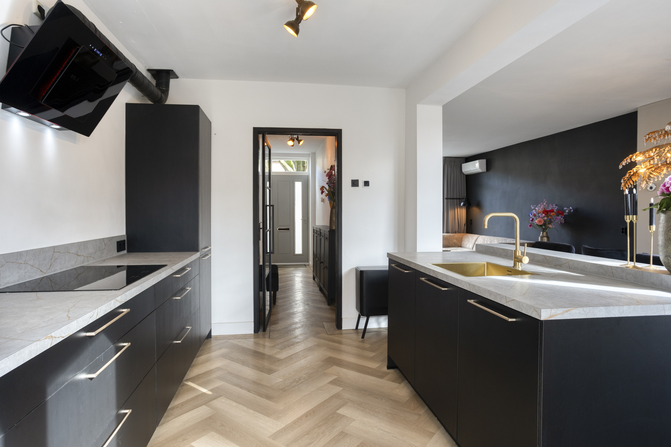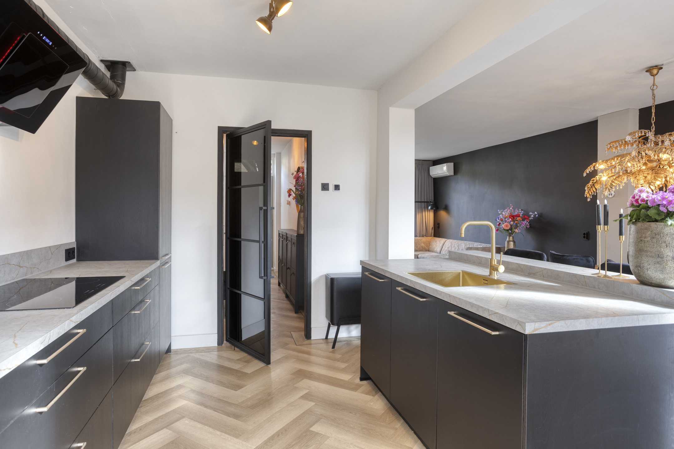 Op de begane grond vind je een royale woonkamer van 33 m2; een doorzonkamer met vloerverwarming waar je kunt genieten van de prettige ruimte. De open keuken geeft de ruimte een extra dimensie en is uitgerust met inbouwapparatuur in een moderne kleurstelling.