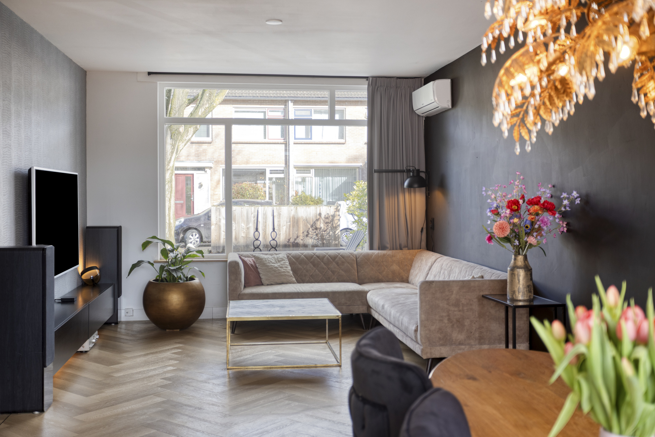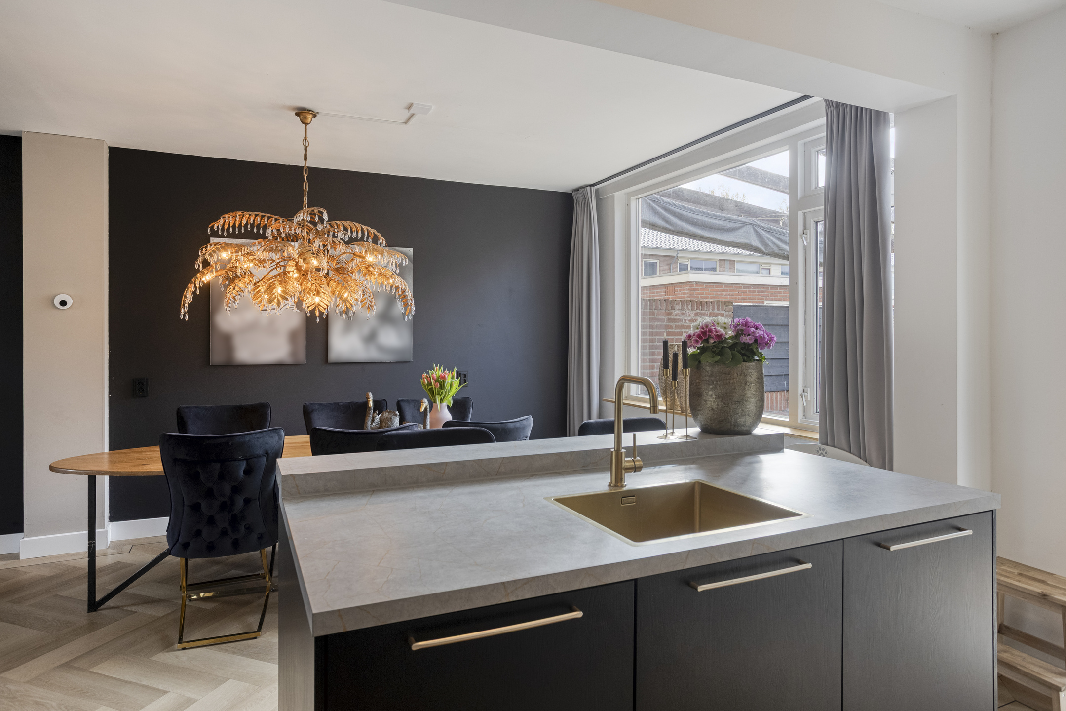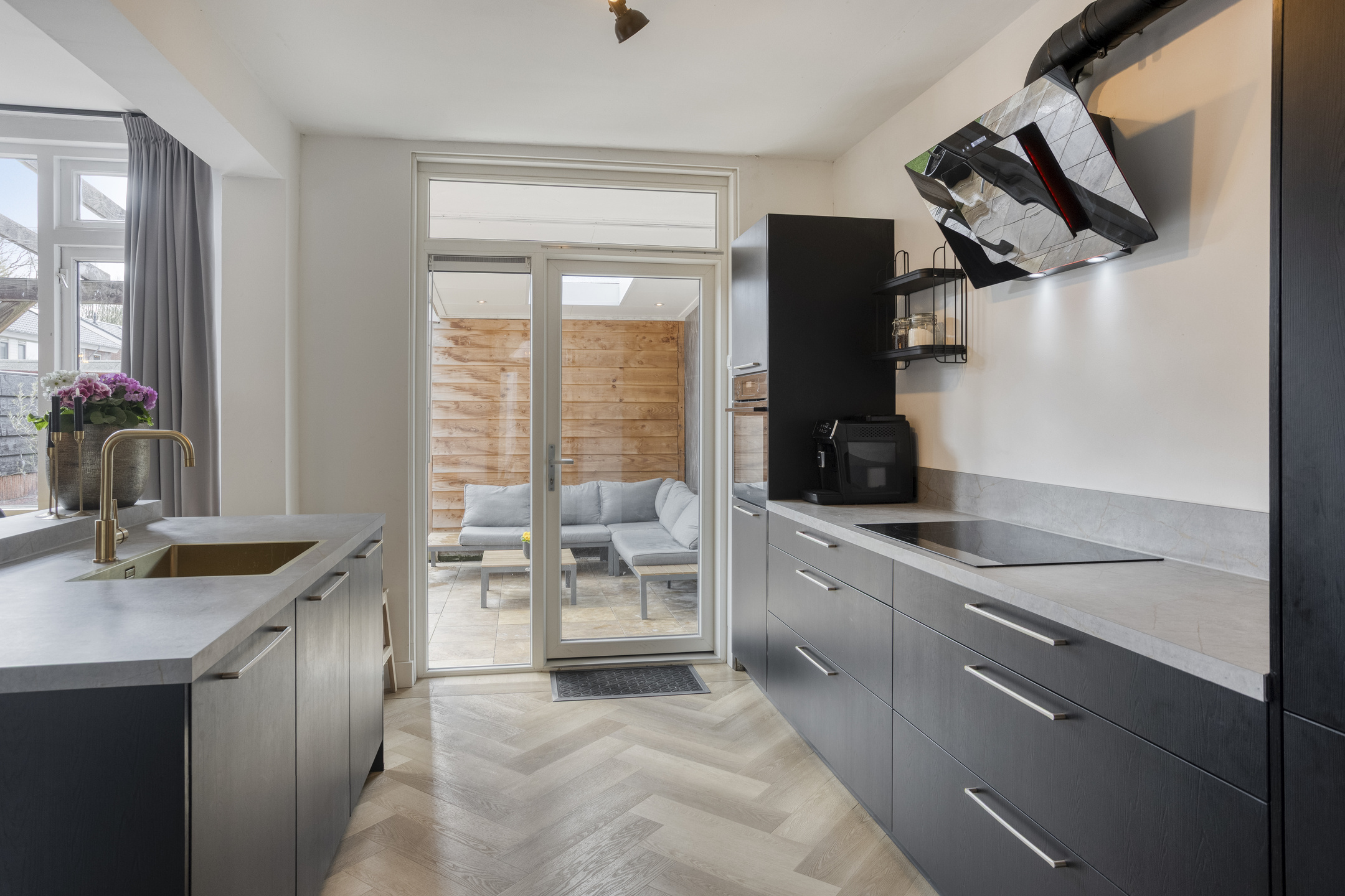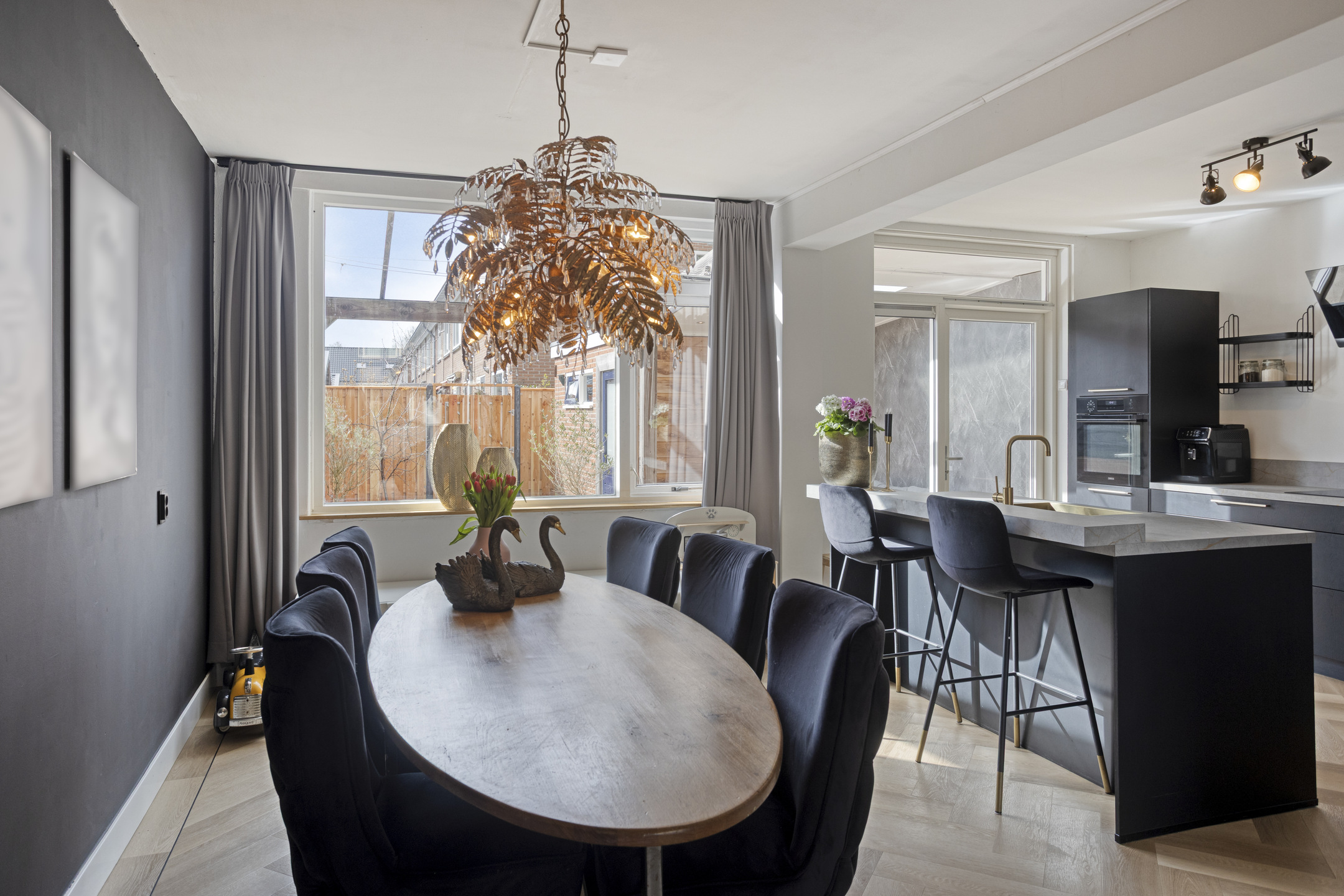 Op de begane grond vind je een royale woonkamer van 33 m2; een doorzonkamer met vloerverwarming waar je kunt genieten van de prettige ruimte. De open keuken geeft de ruimte een extra dimensie en is uitgerust met inbouwapparatuur in een moderne kleurstelling.