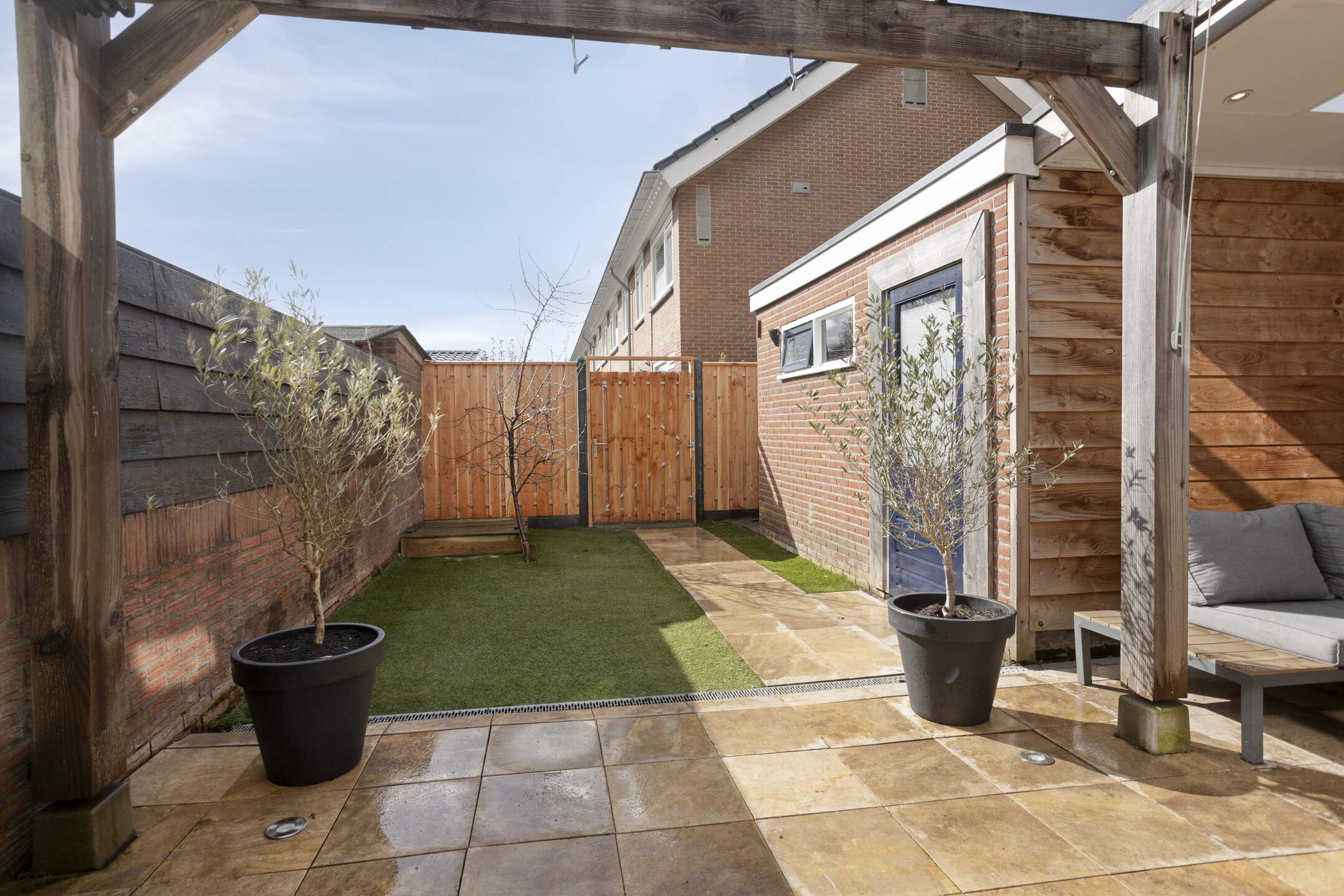 De tuin heeft een zuidelijke ligging, waardoor je de hele dag kunt genieten van de zon. Er is een achterom aanwezig en is er een vrijstaande stenen schuur voorzien van elektriciteit. De schutting en de toegang tot de tuin zijn recent vernieuwd.