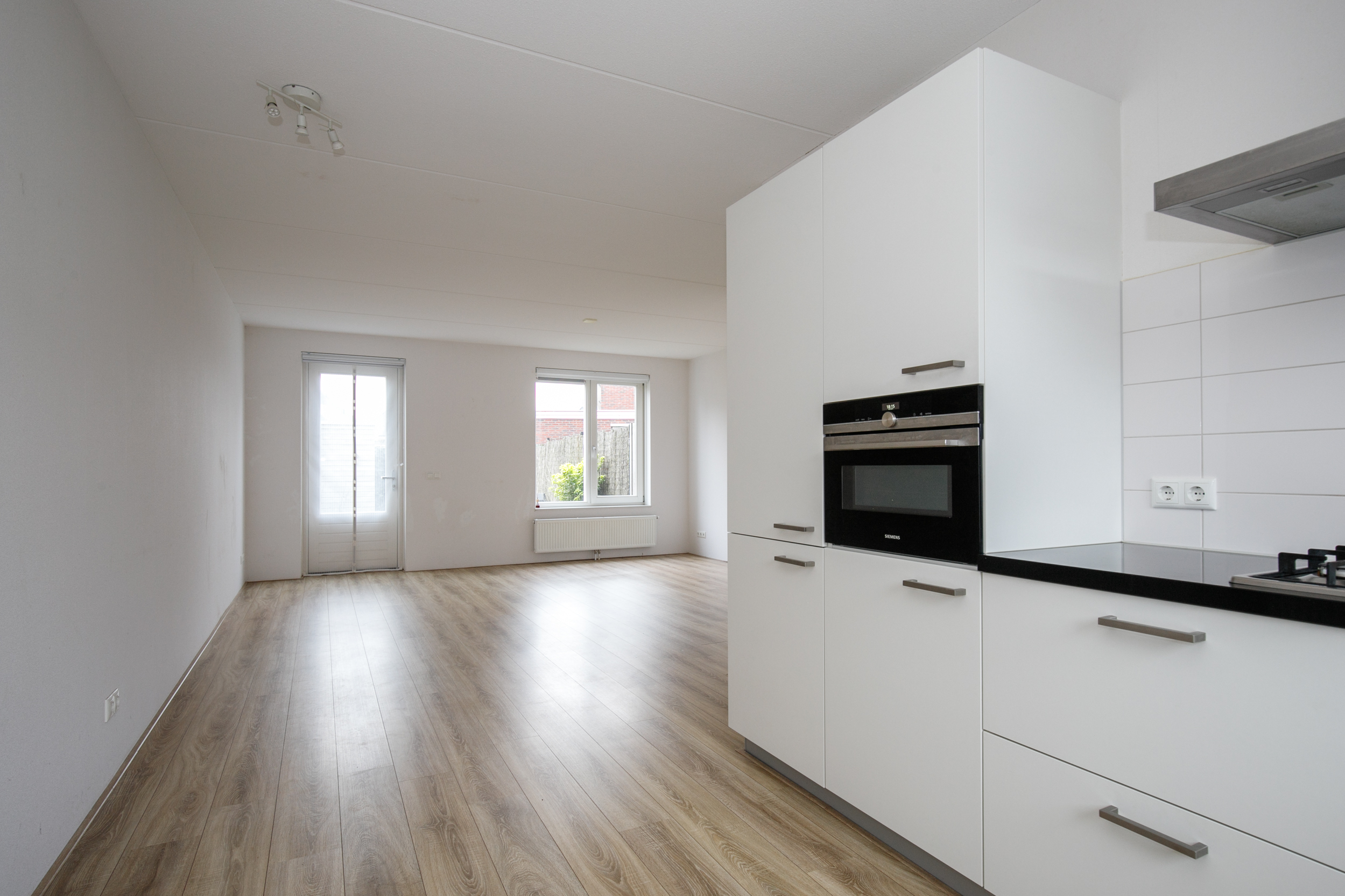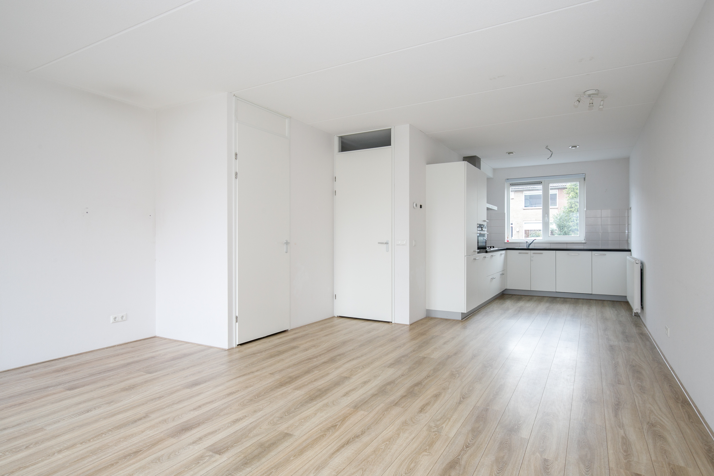 De woonkamer met veel lichtinval is voorzien van een groot raam en tuindeur naar de diepe achtertuin. In de woonkamer is de trapkast aanwezig. De keuken is aan de voorzijde gelegen van de woning en heeft erg veel werk- en extra bergruimte. Deze moderne keuken is voorzien van combi-oven, een gaskookplaat, vaatwasmachine, koelkast met vriezer. Er is een ruime entree met toilet.