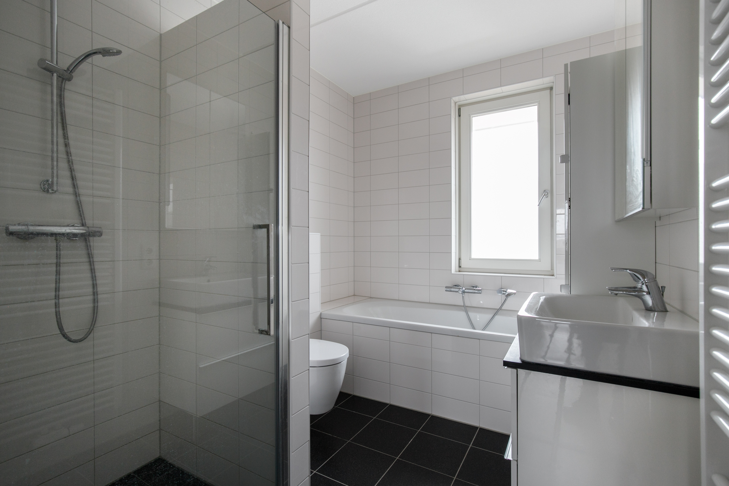 Drie ruime slaapkamers op de eerste verdieping waarvan de ouderslaapkamer voldoende ruimte heeft voor een extra vaste linnenkast. Er is een fraaie badkamer met inloopdouche, ligbad, toilet en wastafel met meubel.