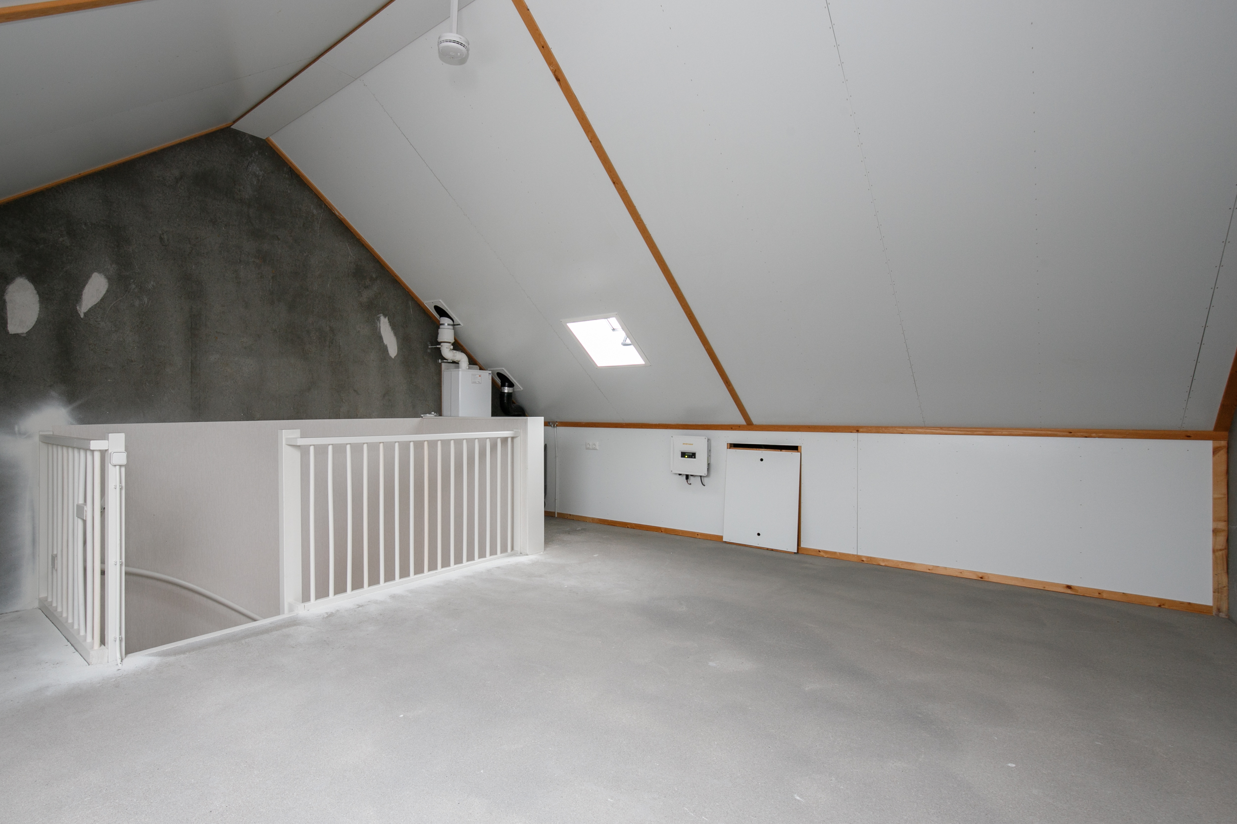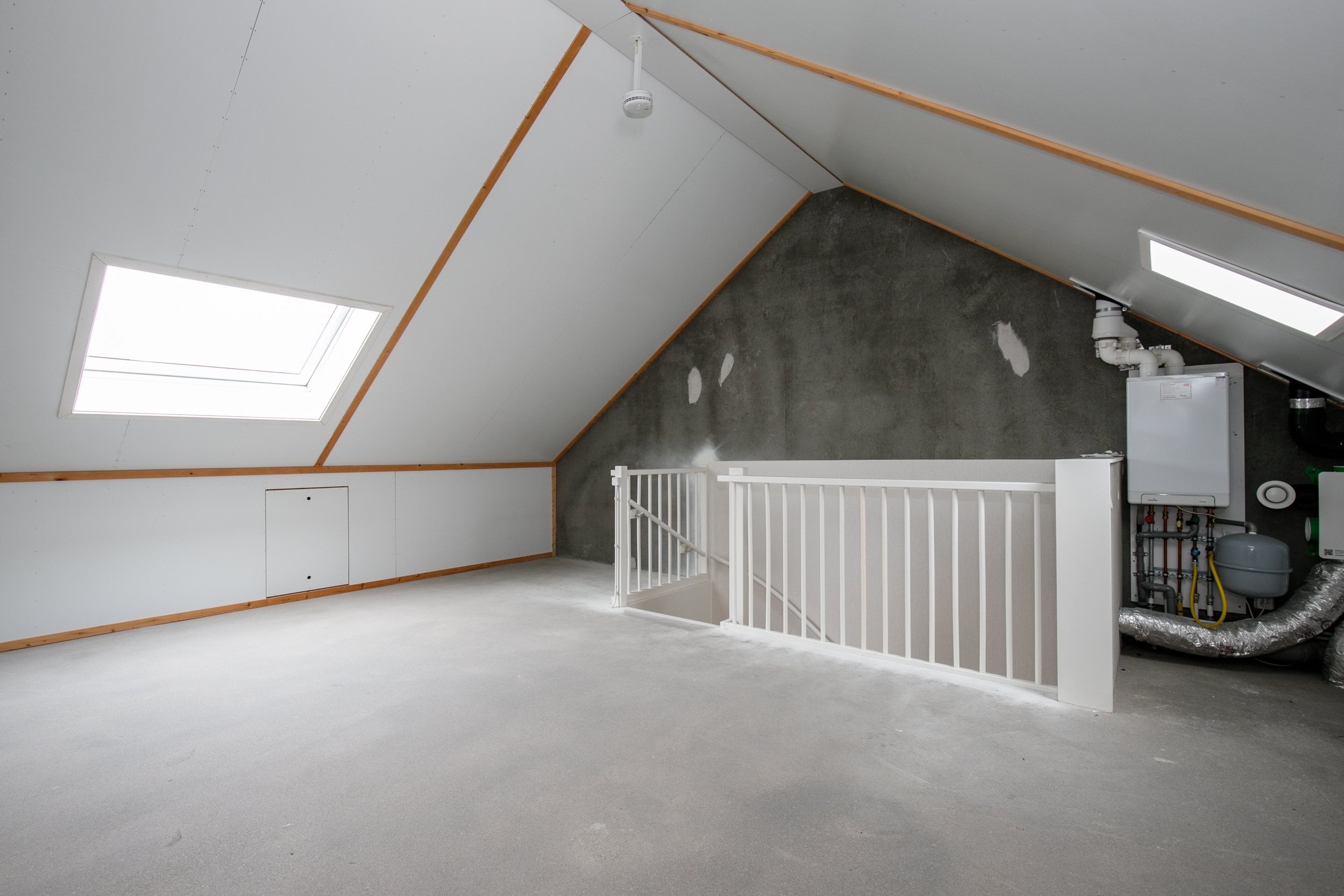 Op de tweede verdieping is een ruime zolder die mogelijk in te delen is in meerdere ruimtes. Zo is hier de wasmachine aansluiting en cv-ketel. Ook de aansluiting van de 4 zonnepanelen is hier geplaatst.