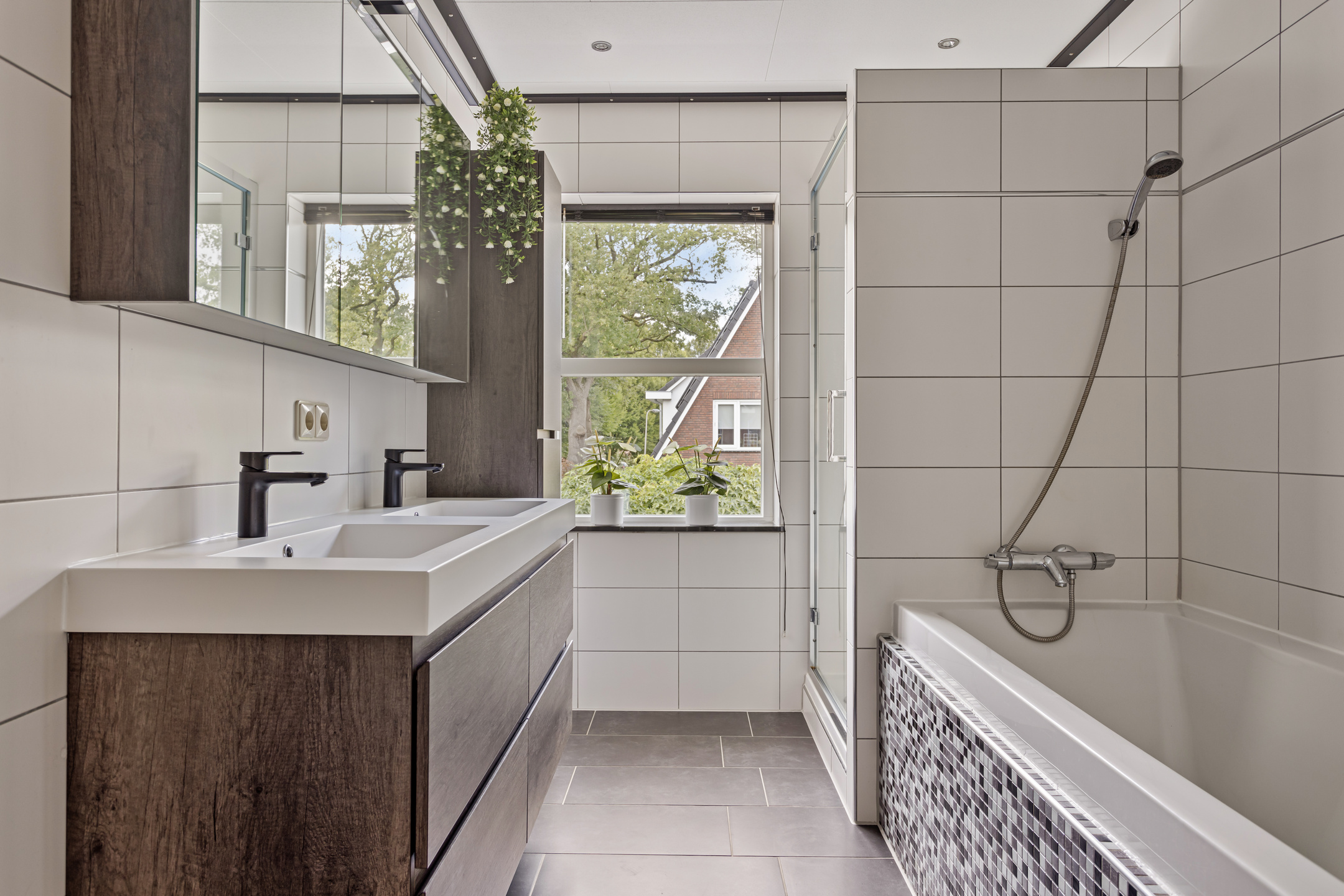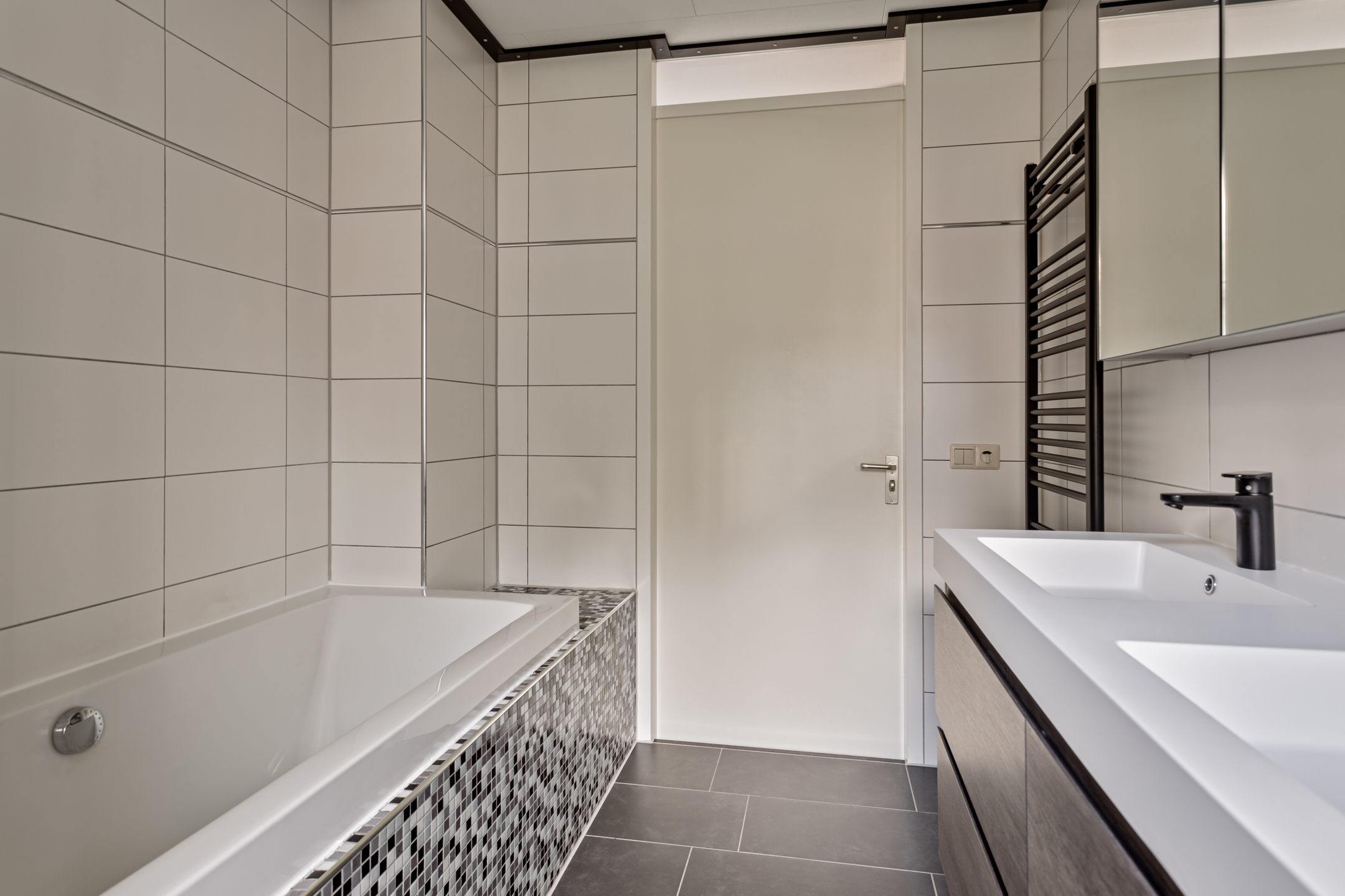 De badkamer is ruim opgezet en compleet uitgerust met een dubbele wastafel, een ligbad, een aparte douche én vloerverwarming. De slaapkamers zijn royaal en praktisch, de twee grootste slaapkamers beschikken over vaste kasten.