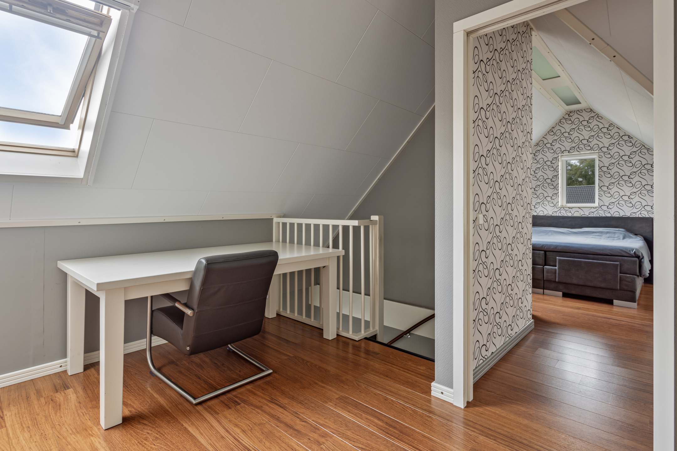 De tweede verdieping is praktisch ingedeeld en biedt toegang tot een ruime, vierde slaapkamer. Dankzij de slimme indeling en de aanwezigheid van veel bergruimte is deze verdieping bijzonder functioneel en biedt deze voldoende ruimte voor een extra hobby of thuiswerkplek.