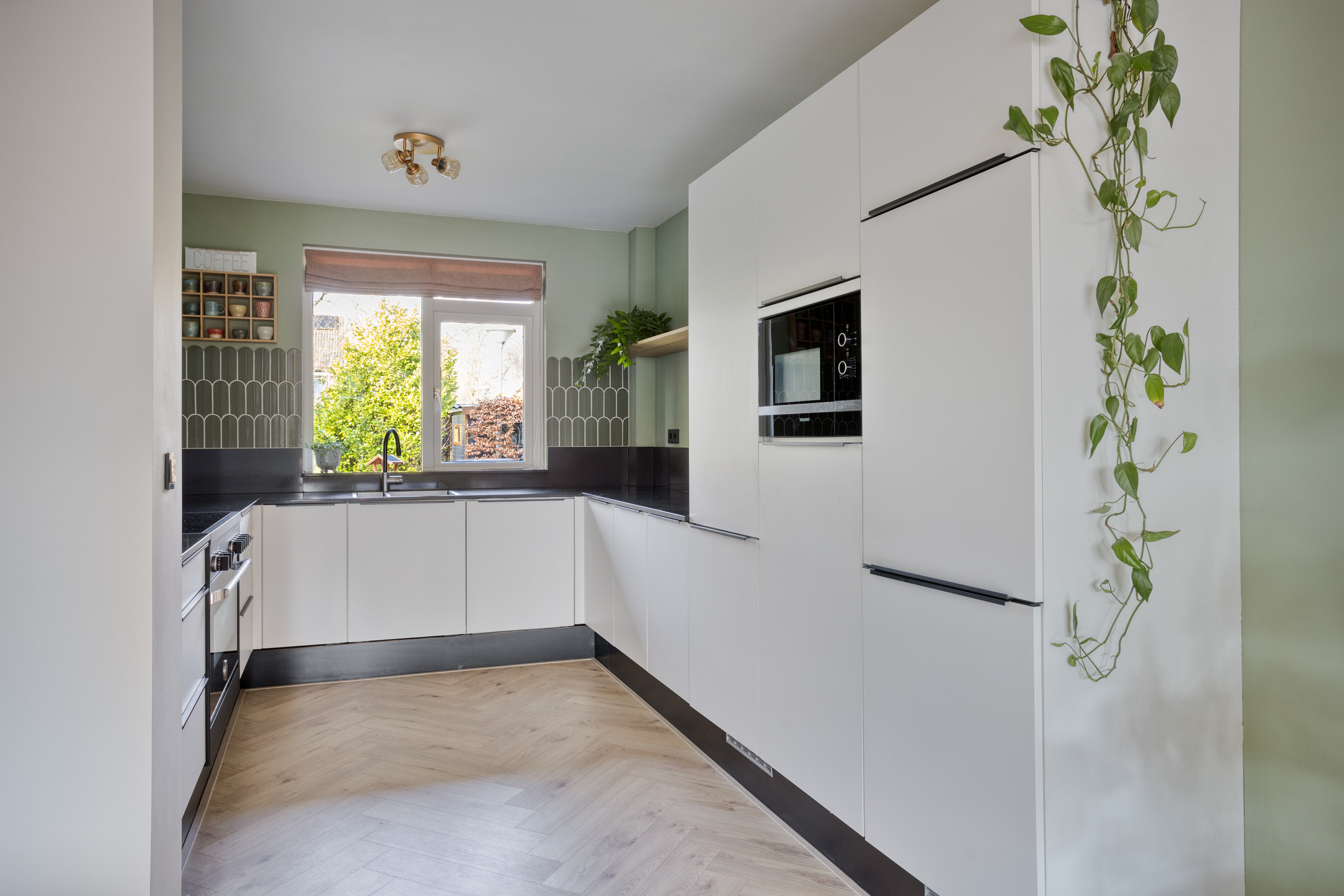 De moderne keuken (2022) is voorzien van diverse inbouwapparatuur, waaronder een kookplaat, oven, combimagnetron, koelkast, vriezer en vaatwasser . Hiermee is de woning grotendeels instapklaar.