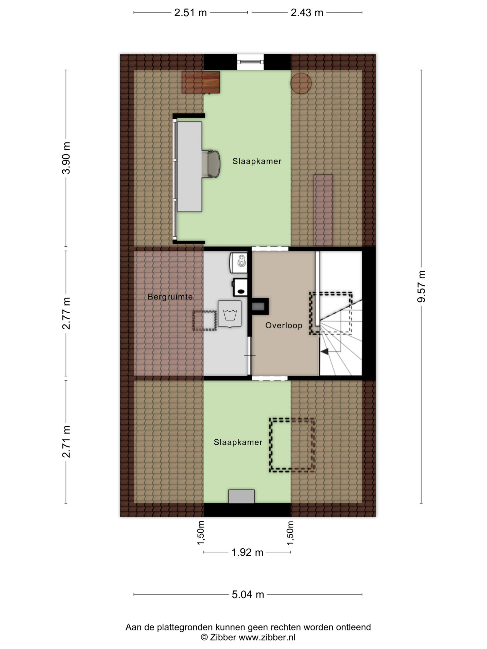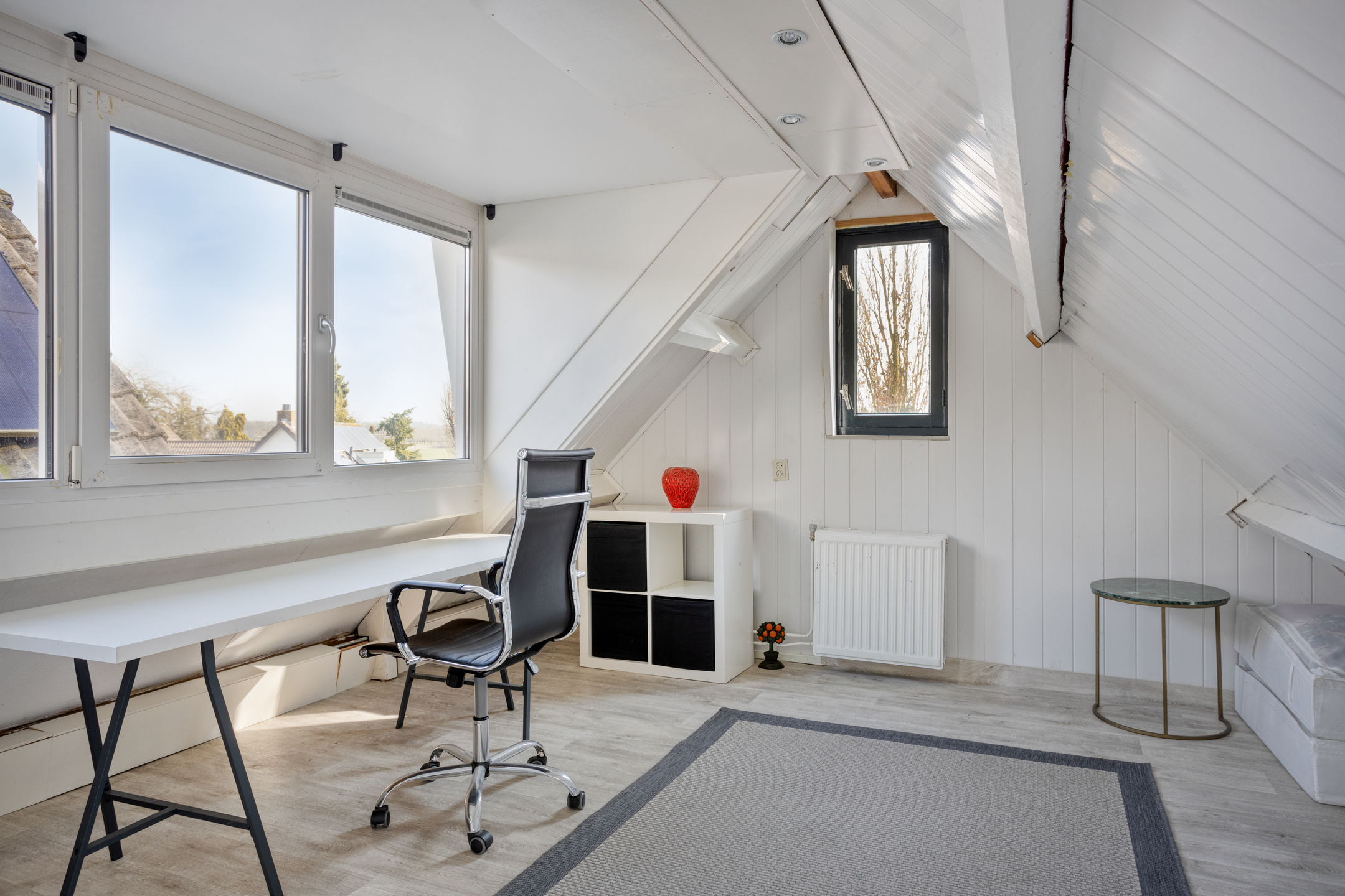 – Zolder met 2 kamers, dakkapel en lichtkoepel