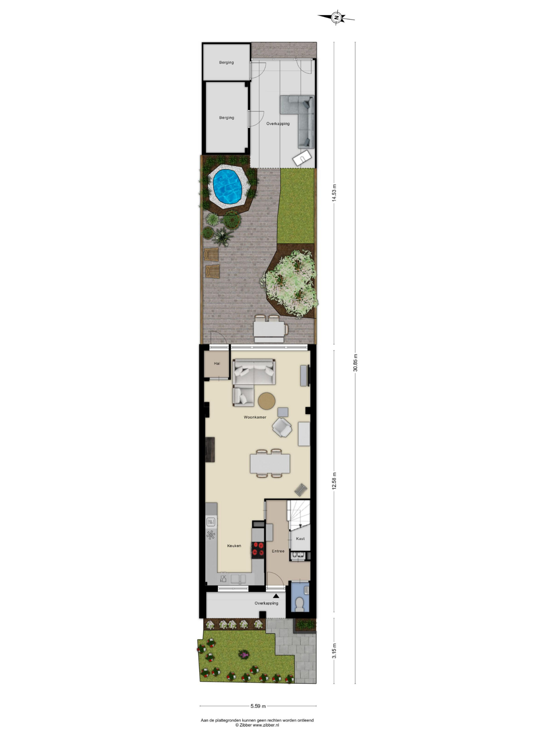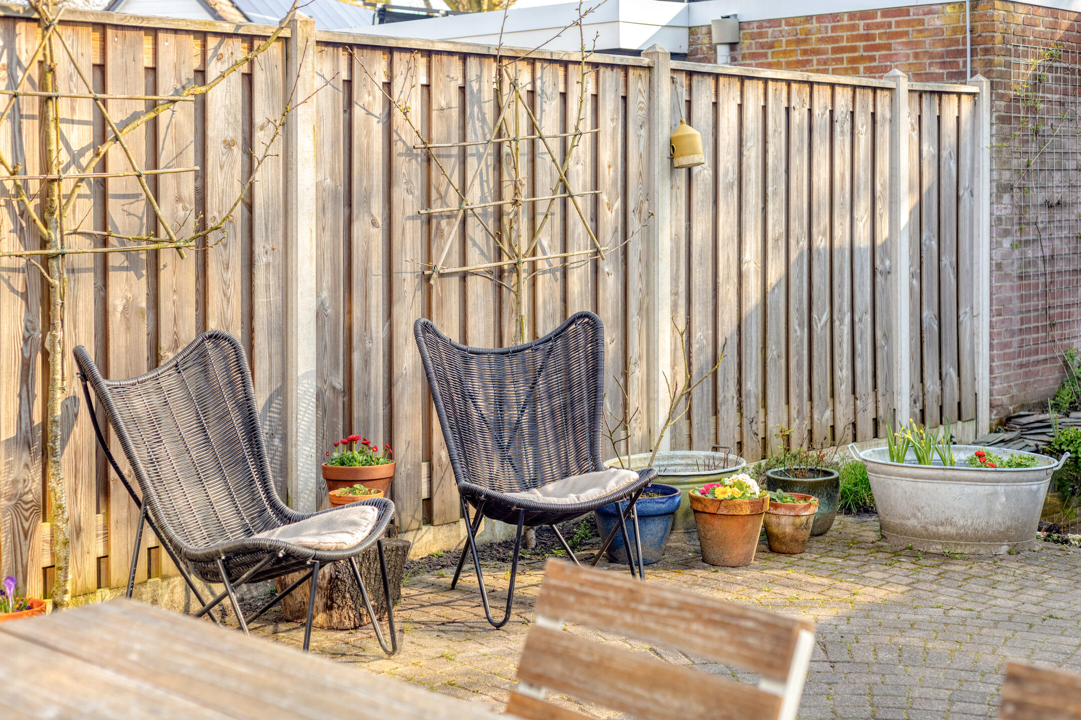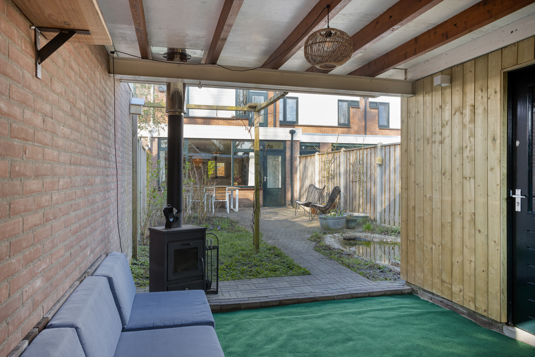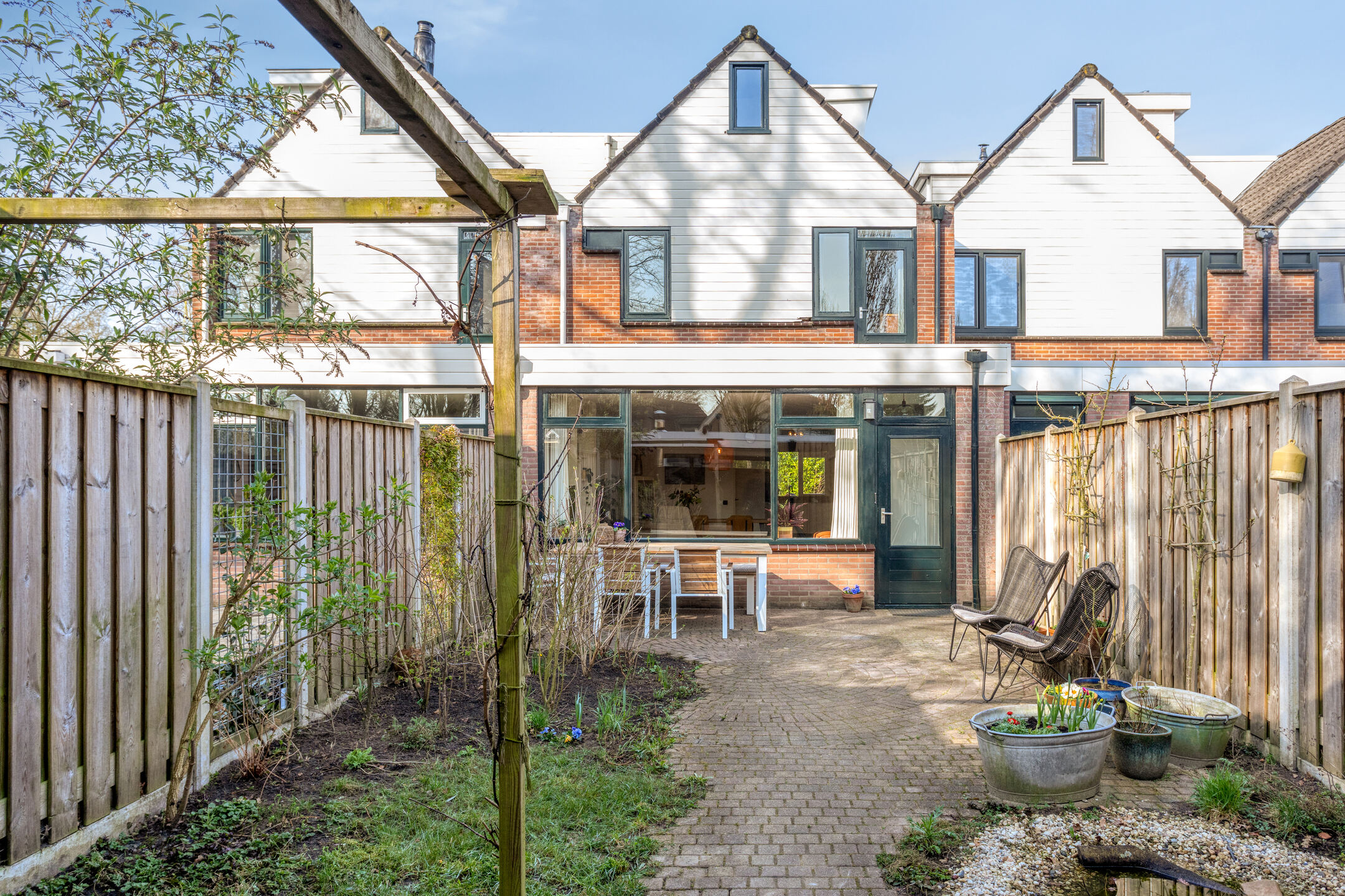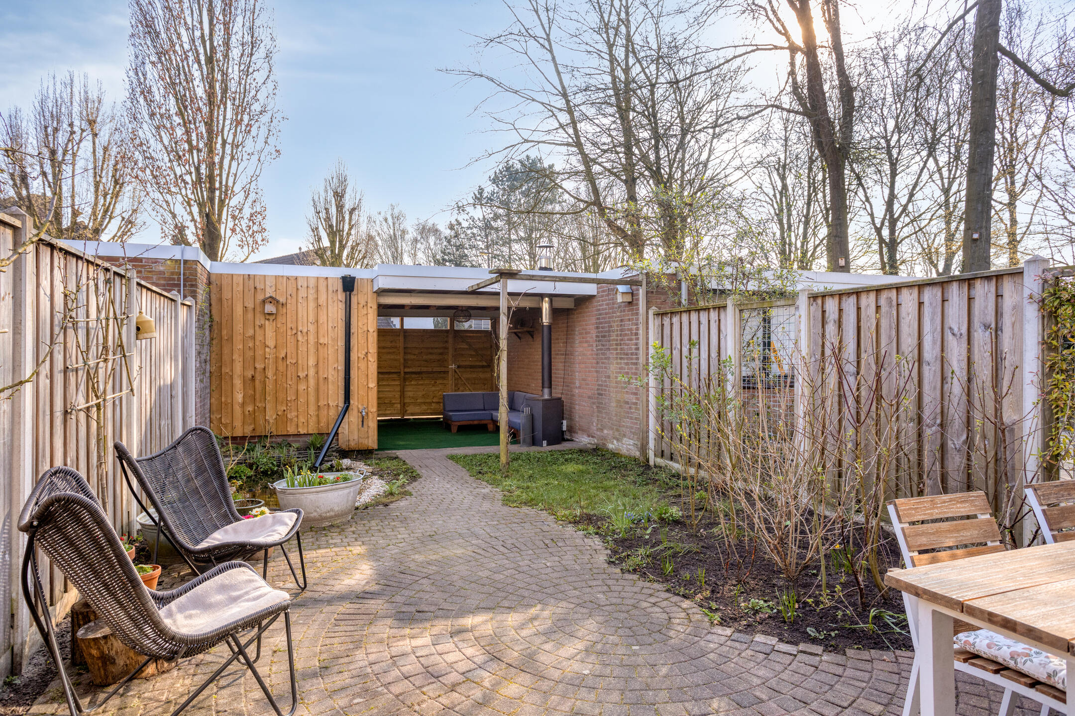 – Achtertuin met berging en achterom